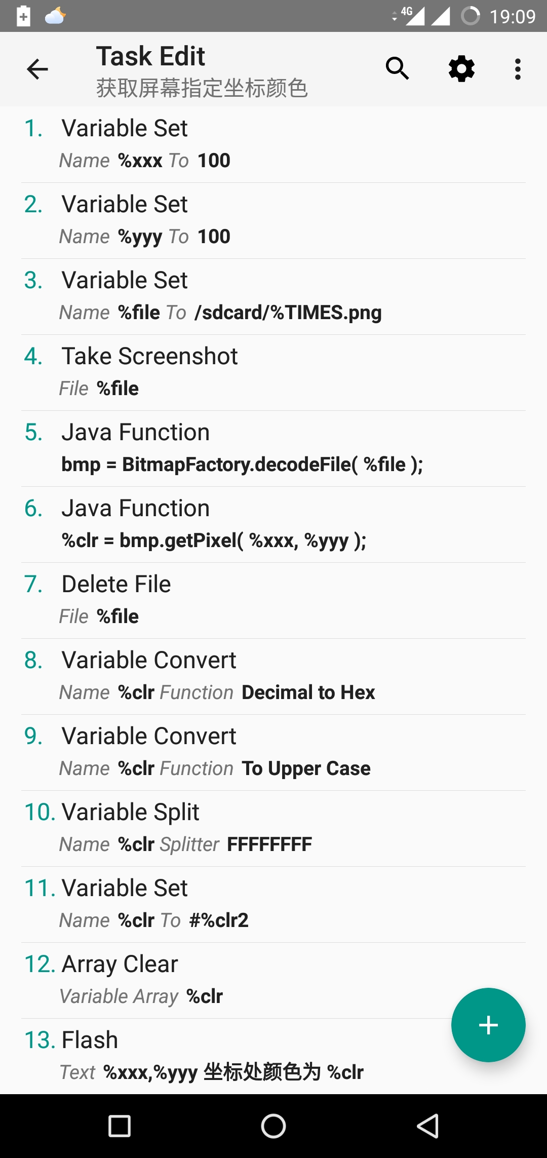 不知道Tasker新版有没有取色的功能,根据我的经验是这样写的...