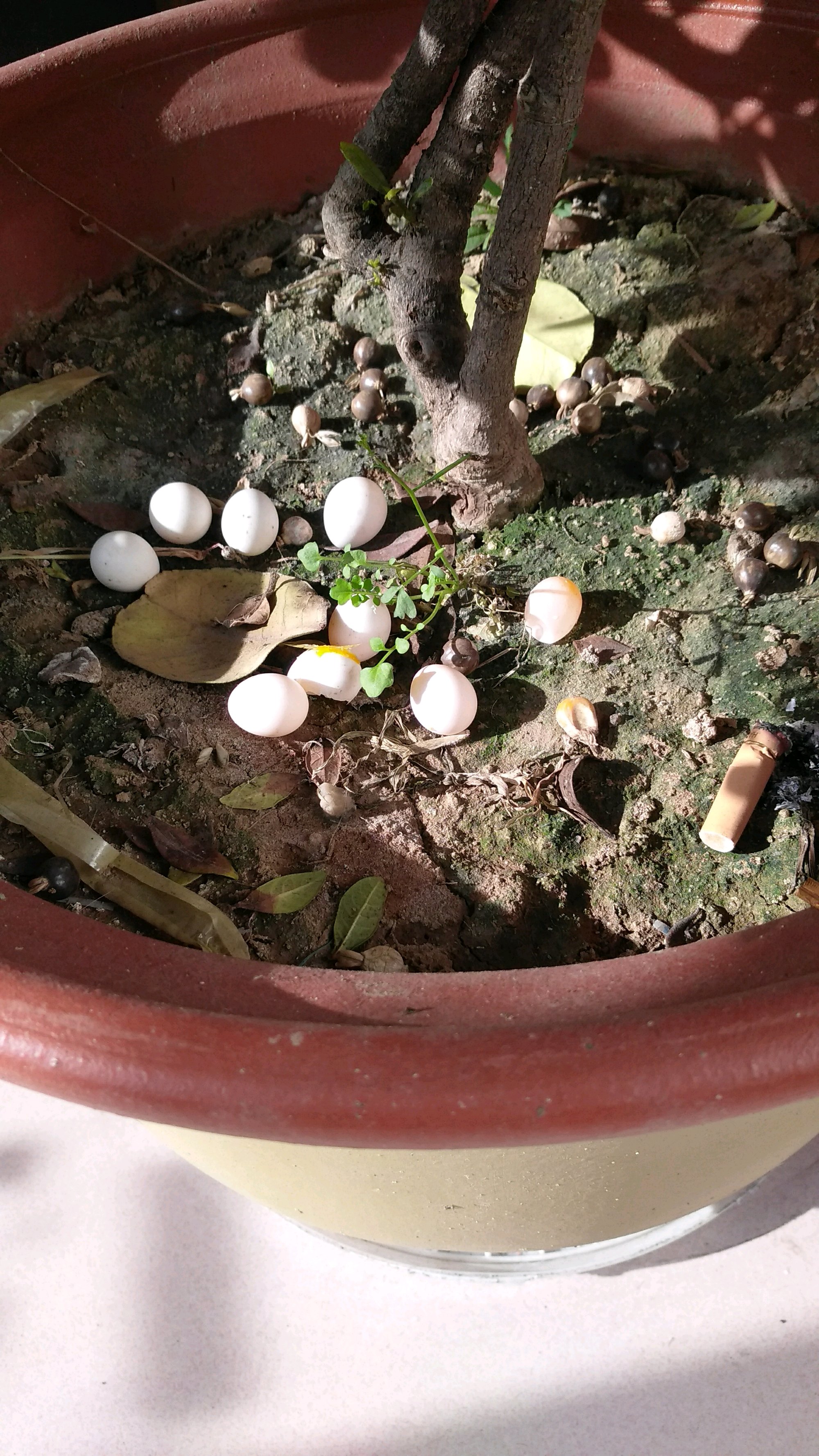 这是下的部分白蛋,包括另外鸟的半发育蛋和软蛋。