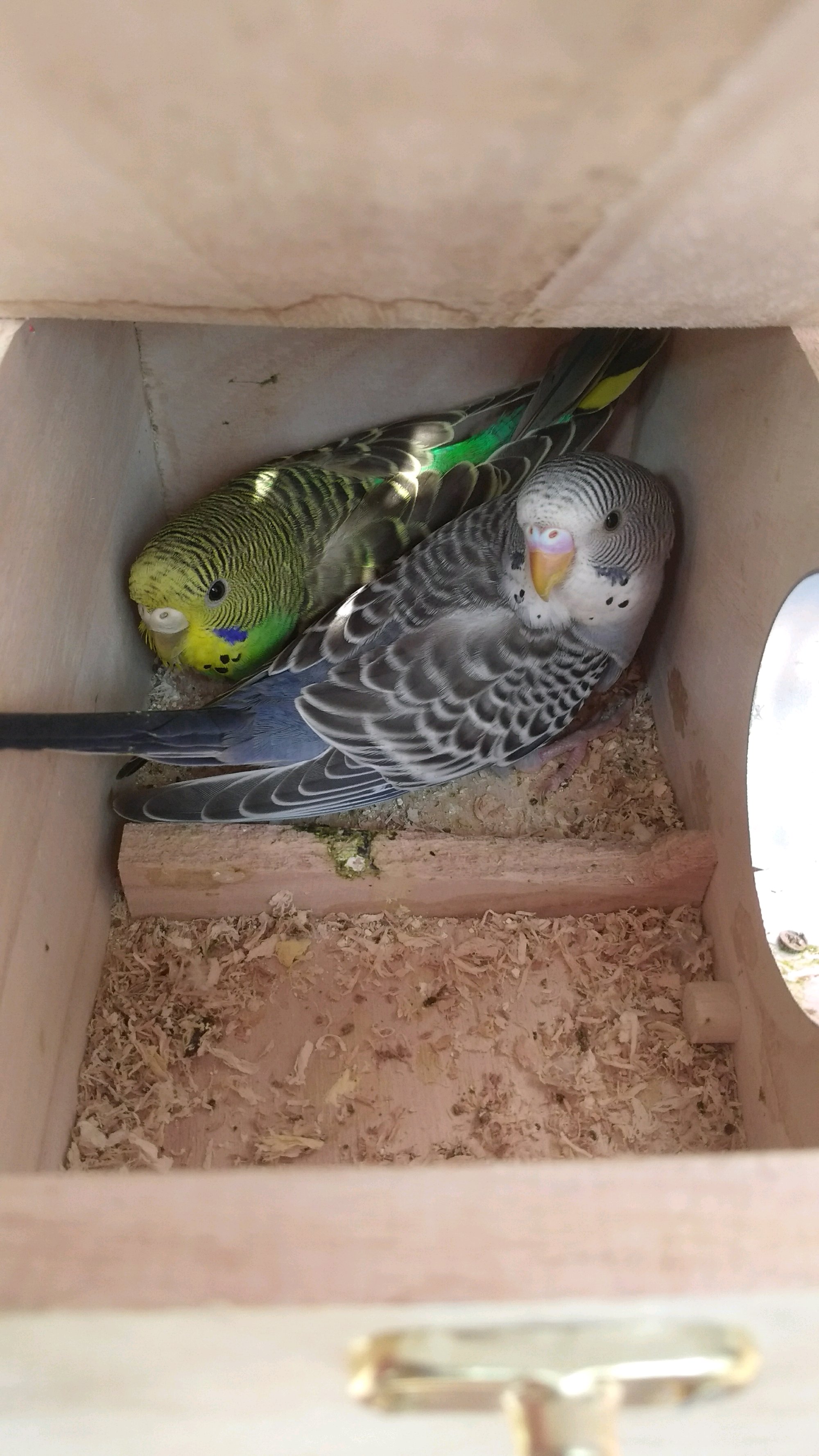 公鸟刚买来时像母,现在已经确认是公,鼻子全粉,也开始变蓝了。