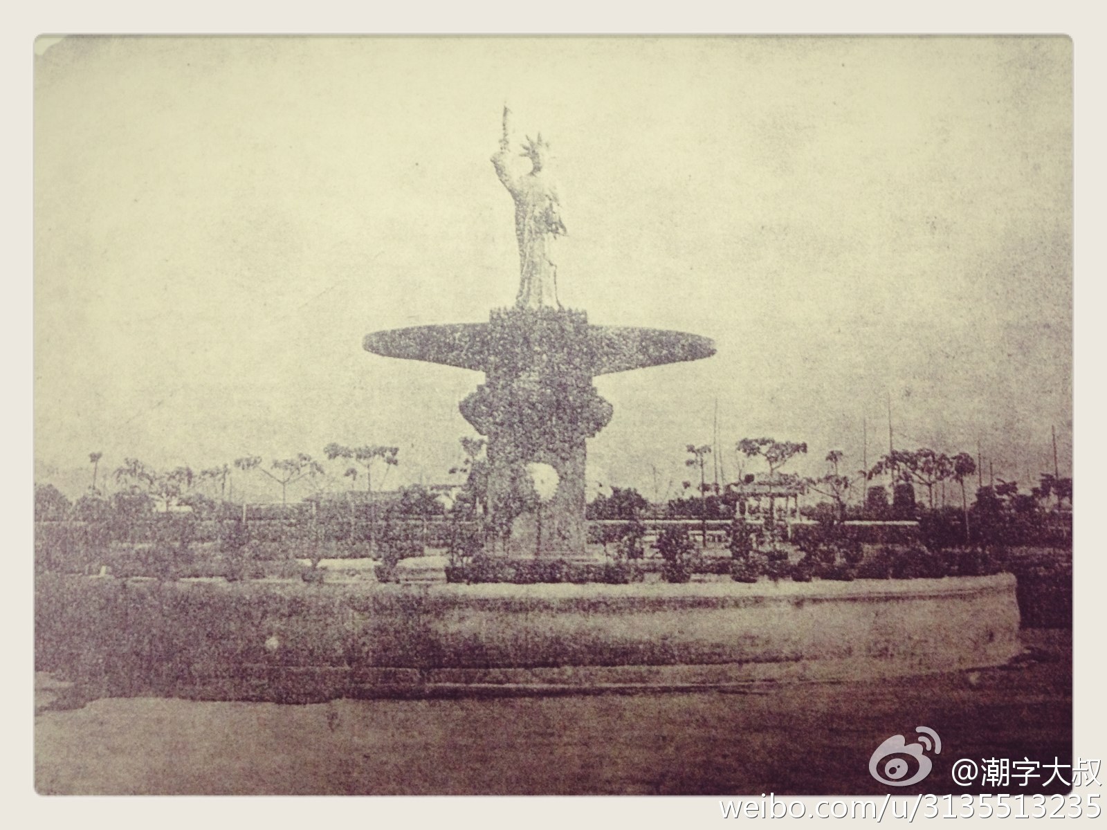 最早建成的中山公园大门口,早期是自由女神像,后来才换成孙中山雕像。