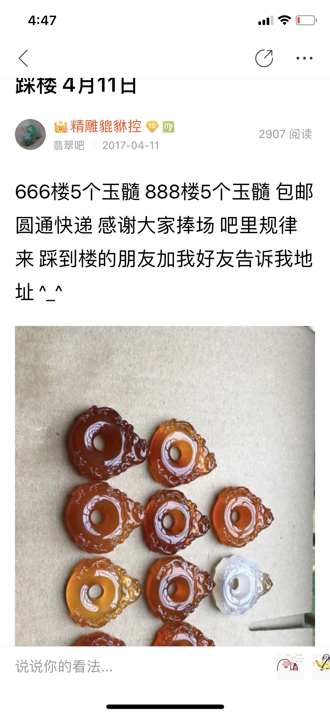 有些网友简直了,普通玉髓15一个的,我拿来踩楼过,还是拿了10个踩的,少了拿不出手。高档的蓝玉髓怎么可能便宜?! 我那种雕工大料子贵,小一点的便宜一些,在一些网友眼里,雕工都不值钱是吧。