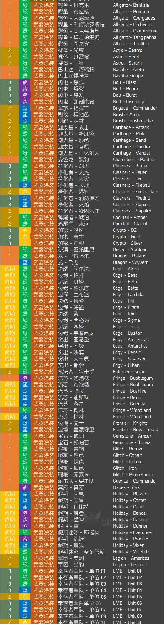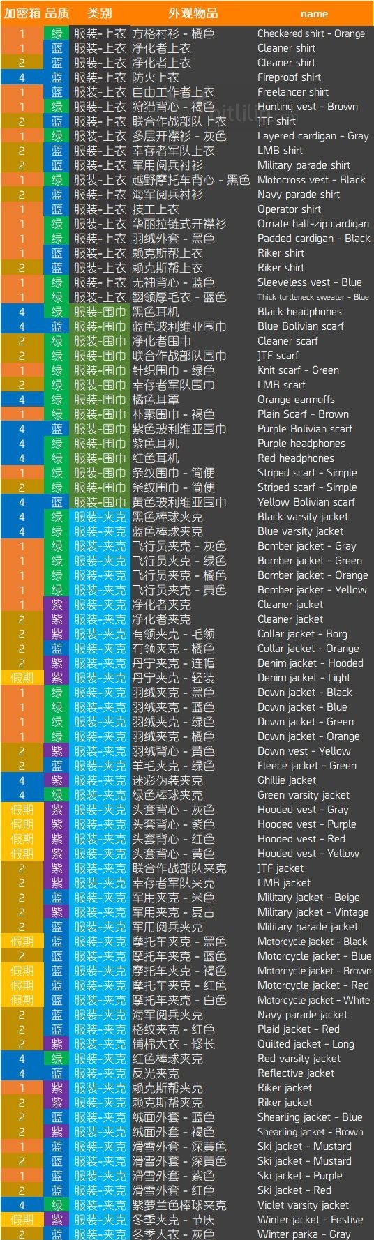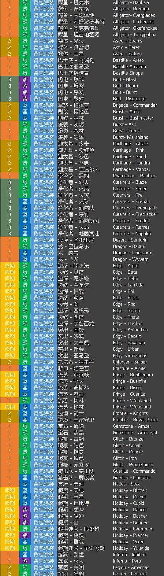 2019.1.10,假期箱将下架(里面的物品可能绝版,除非明年圣诞节育碧再次放出来),“第1-4型加密箱”由“收藏箱”代替(可开出全部19套收藏,但开不出下面列出的非收藏品。非收藏品会定期轮换着在高级货币商人处直接售卖,但再想收集齐就难了)
