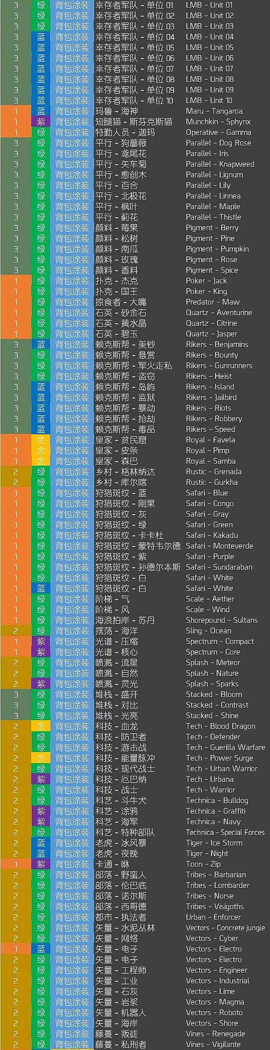 官方曾给过1-3型箱子清单。