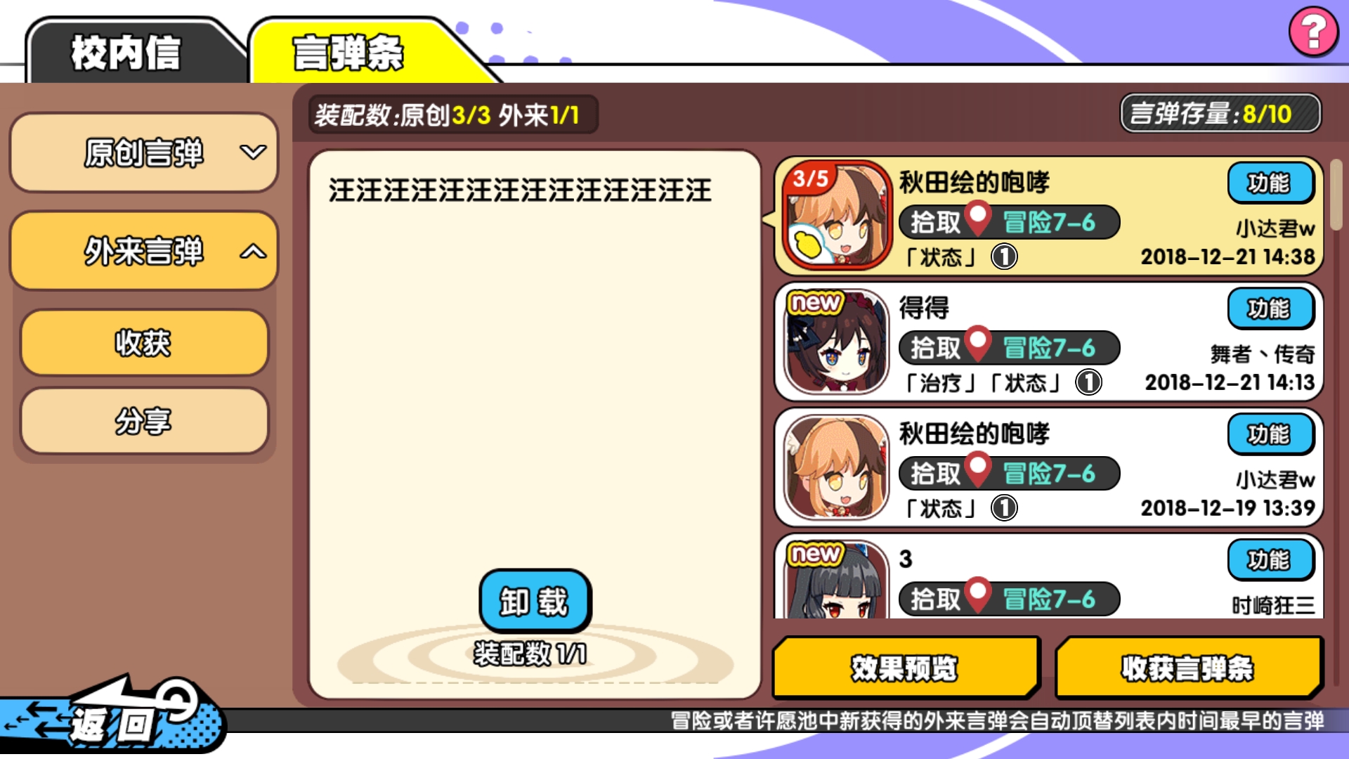 去年青鸟up吧,那个时候入的坑,咱也是明白人,毕竟舰clike这么多游戏玩过来玩过去都那样,大家就看个立绘图个收集,开新坑满收集是大家最喜欢的事。打开诺亚幻想,打开建造,手帐一拉,五星一点:清一色的锦鲤水母那样的,还有偶尔几个俏皮,现在没啥印象了,然后是翻了三四页,看到一个二哈(别提当时的心情了),我先声明不是萝莉控,御姐控,看到二哈,***按照锦鲤的幻想,我居然能以为是一个御姐。憧憬到12月份我获得她(中间都在咸鱼)。当初开始玩,知道初始人品好肯定能出那么一两个高星嘛,一建,水母,我知道,二哈没了,弃坑了半个月。