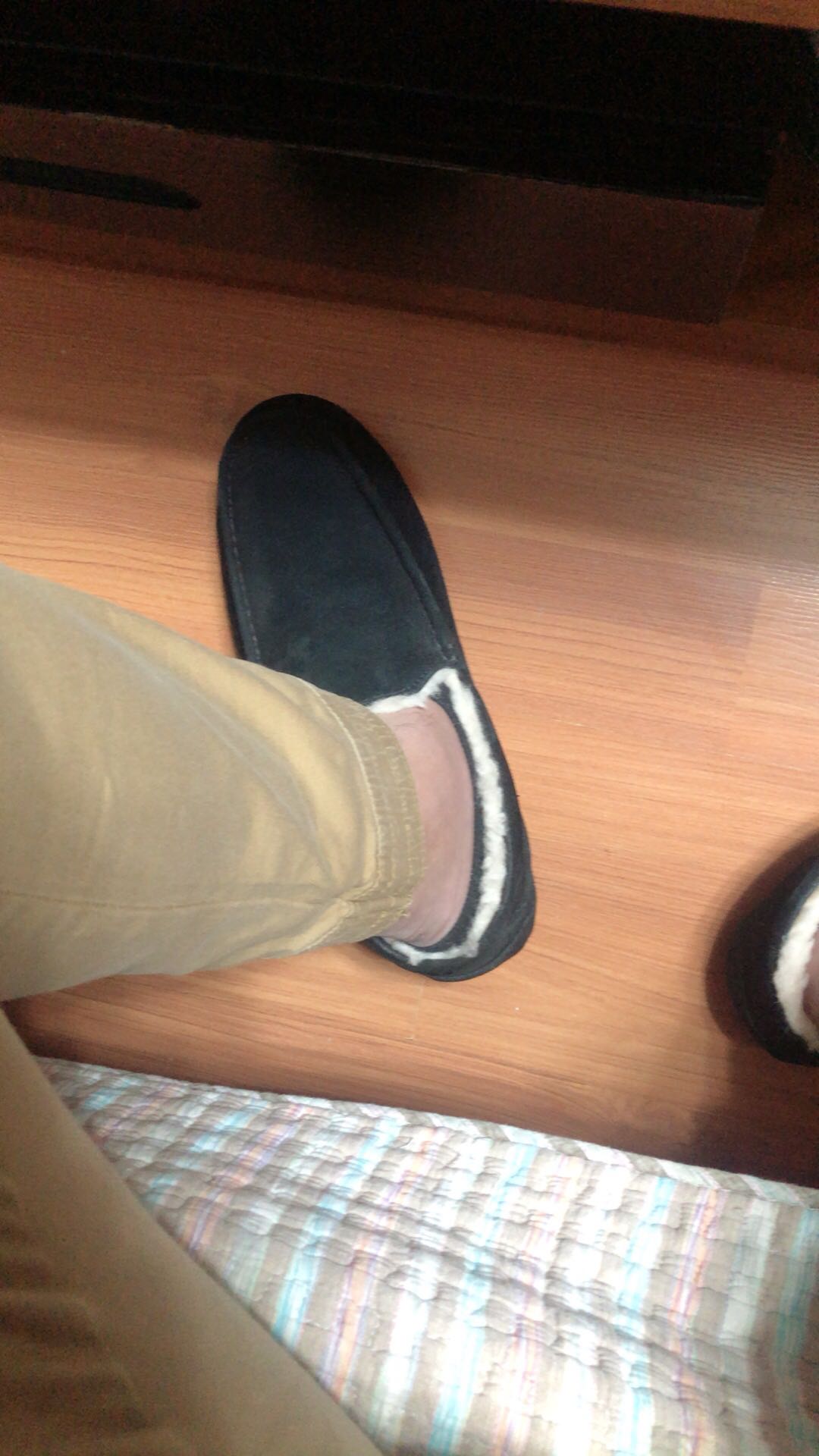 左脚毛量比右脚少,左脚后脚跟明显少一块,正常嘛