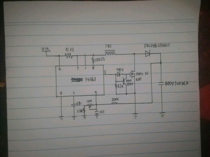 当初我做的时候34063直接推75结果就是管子滚烫