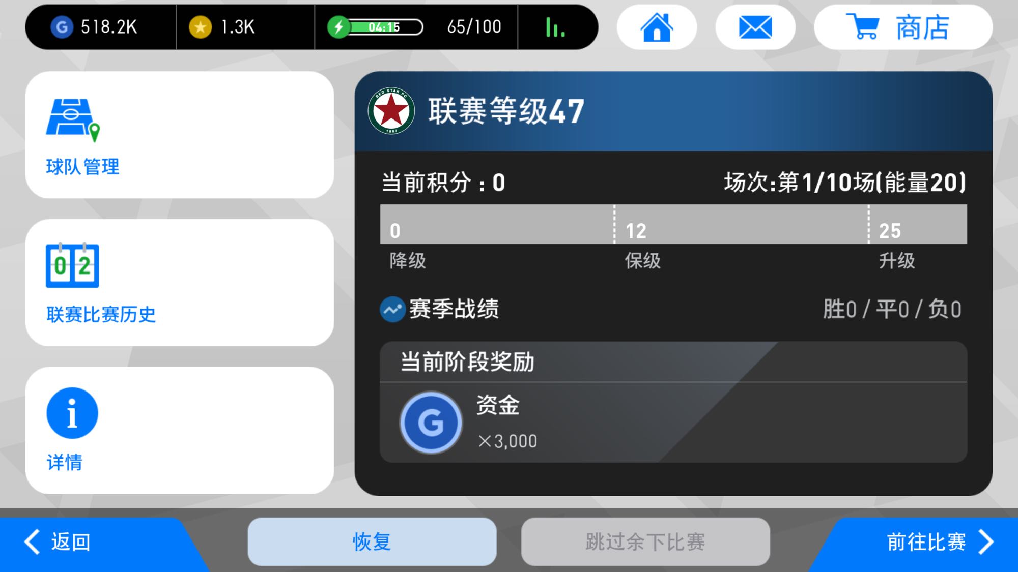 三连败,终于降级了,话说熟练度不高的新球员还是别拿来打马赛大神们了