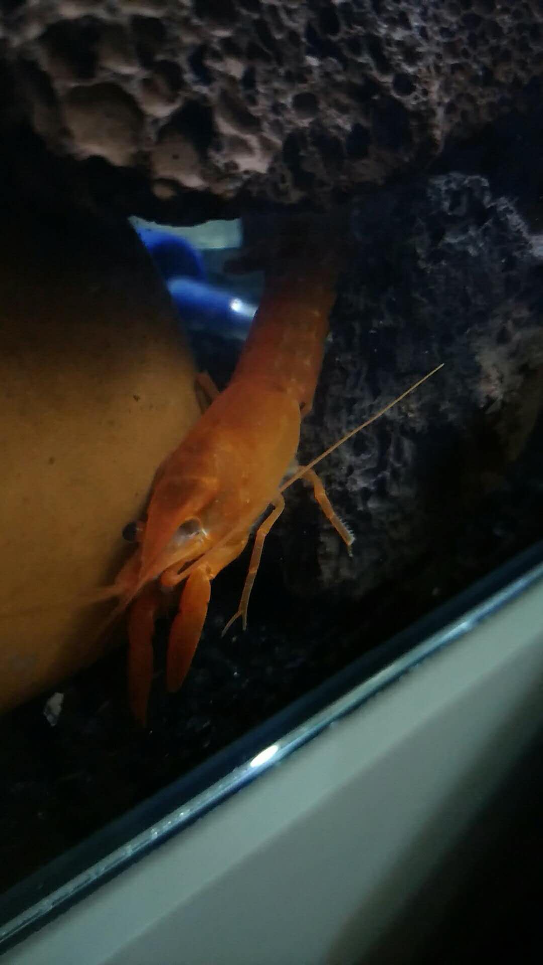 已经过去一年了。目前虾还是很健康的,就是有一只眼睛不大能抬起来,会有些斜。其他正常。我觉得遇到这种情况一定要帮它把眼睛挑回去,不然脱皮时有可能卡住眼睛,导致脱皮失败。