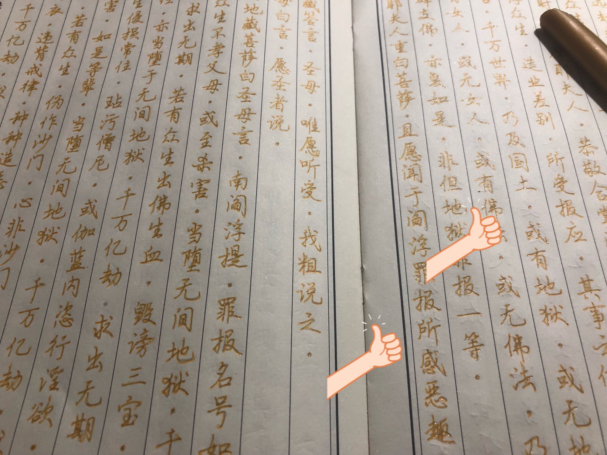 只是描摹而不临帖,对实际生活中的书写改善可能不大吧。不过抄经功德殊胜,非常棒