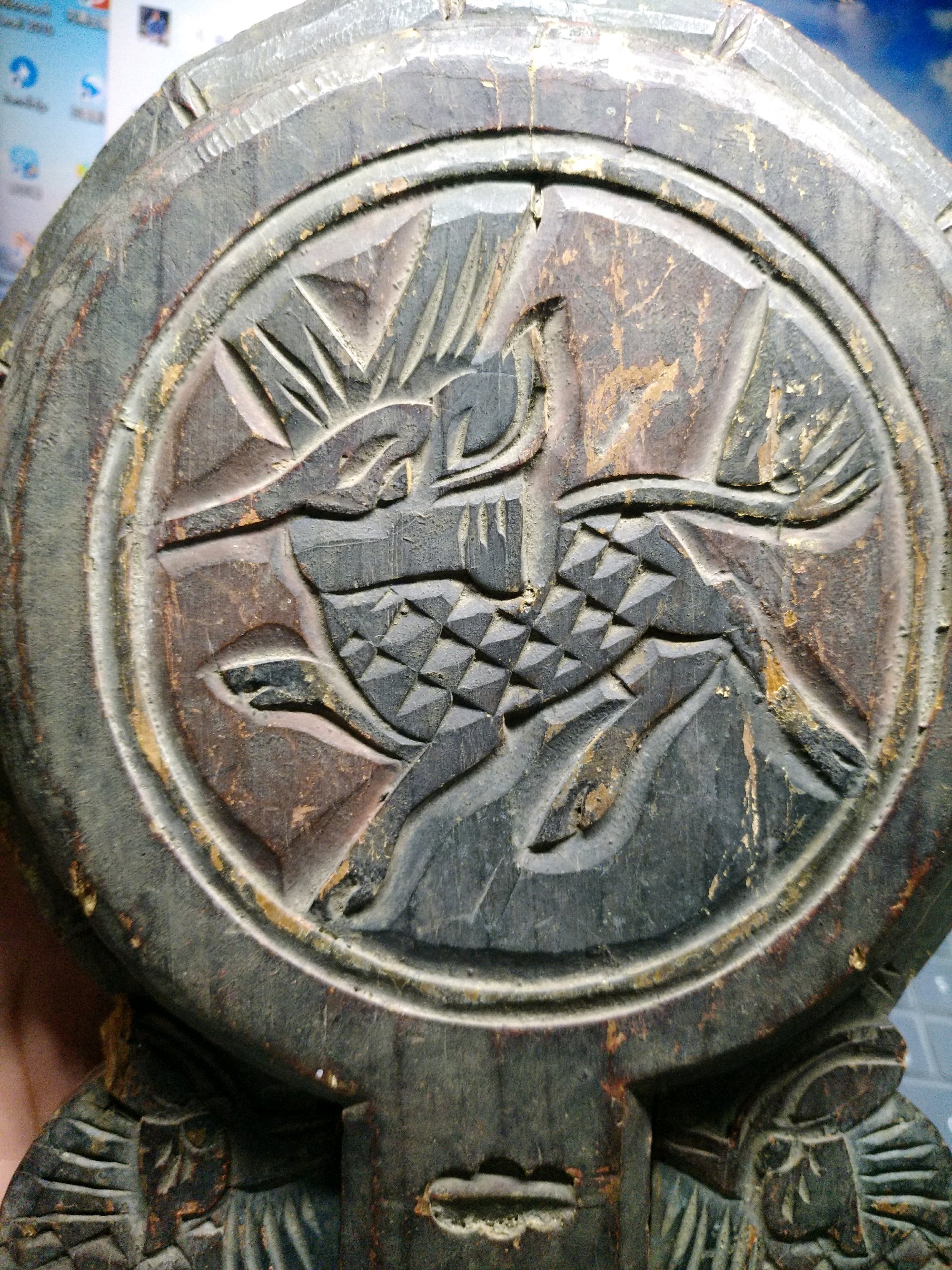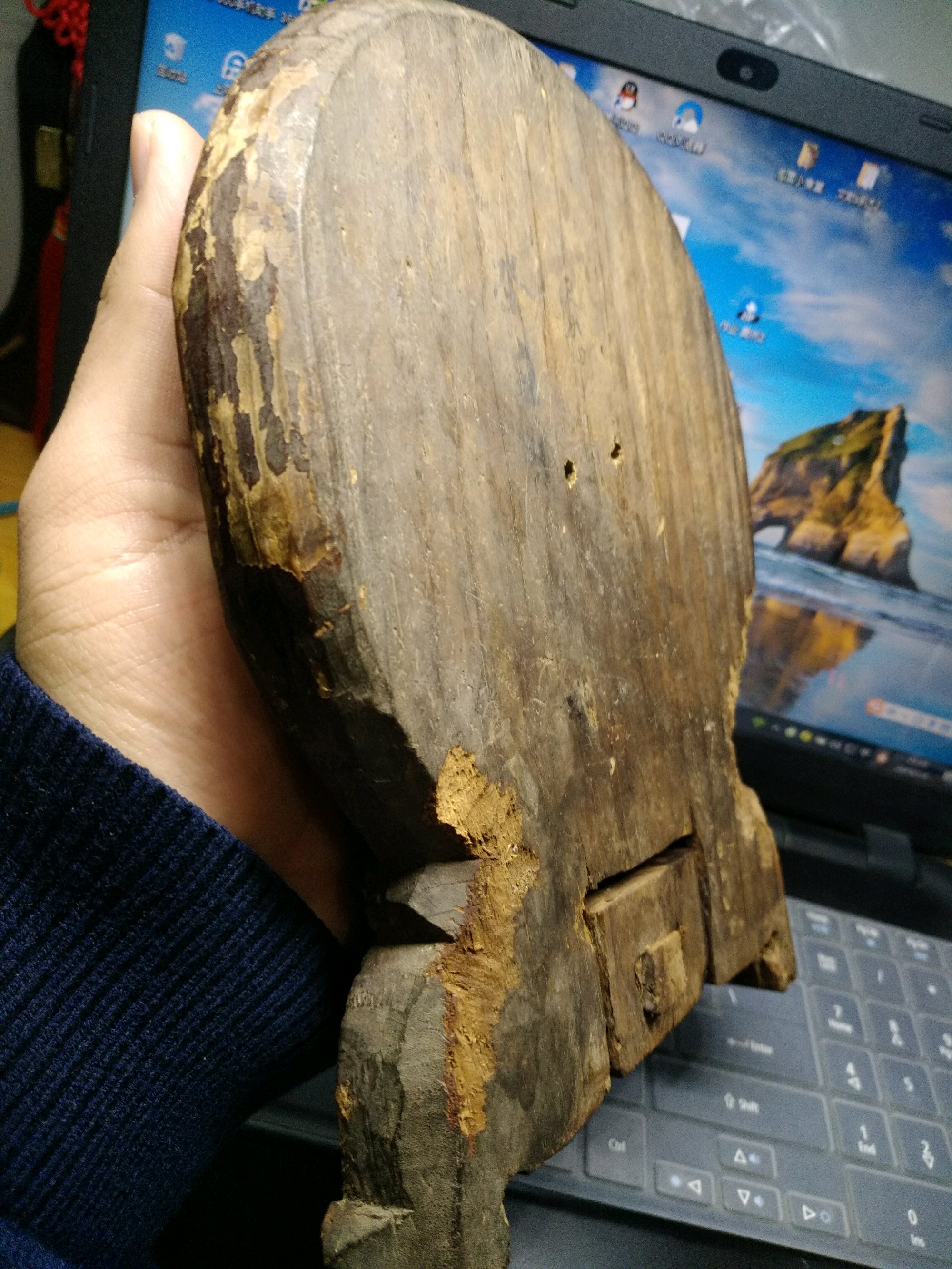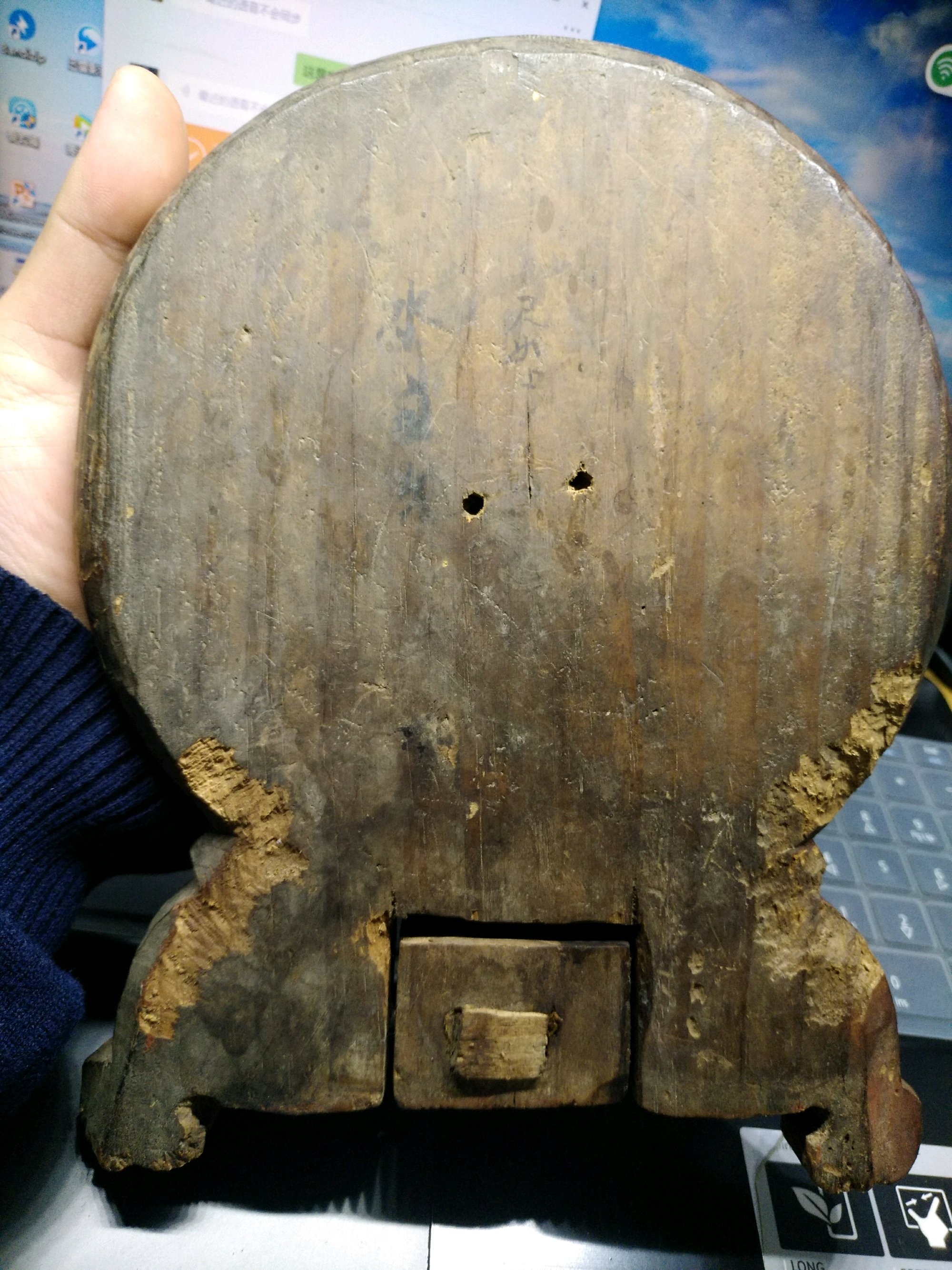 清代铜镜配彩漆麒麟送子木盒,铜镜完美,134*2.2mm,木盒背面带字,1k到家
