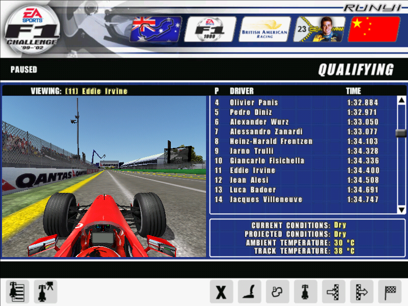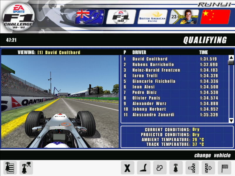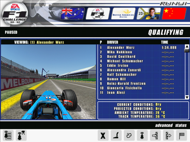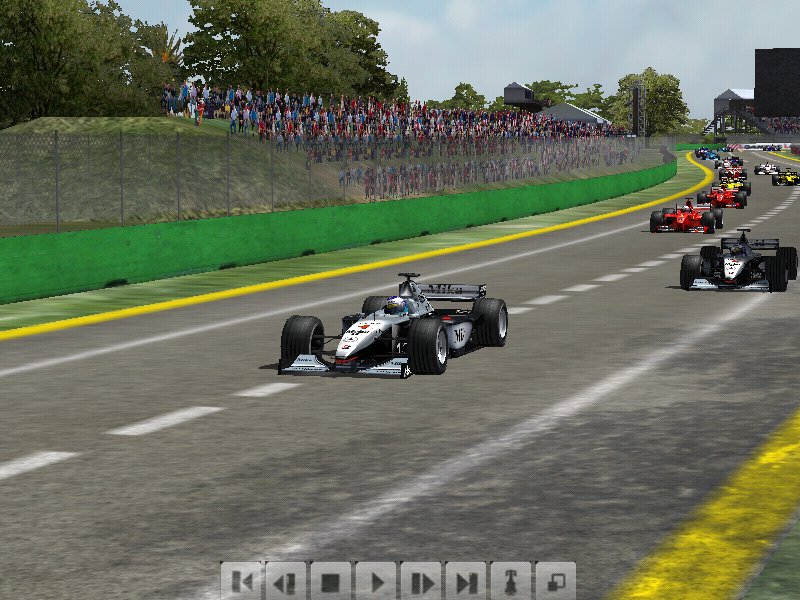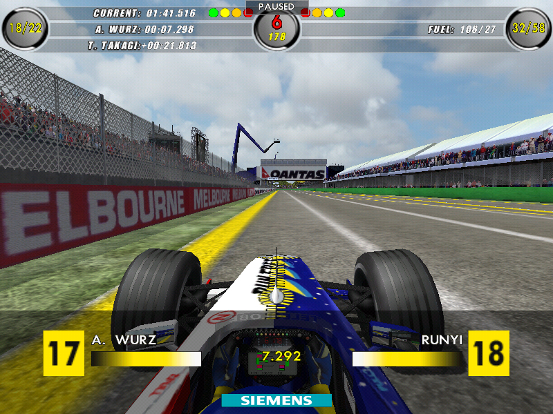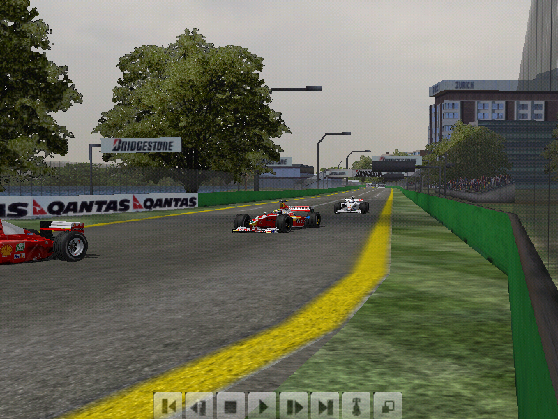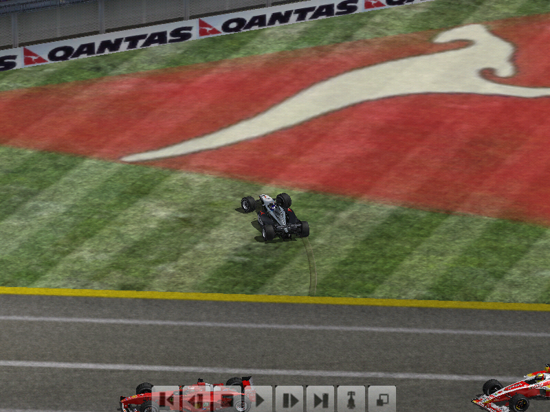 第二圈最后第二弯楼主判断失误直接撞上赫伯特,赫伯特尾翼没了然而楼主没有开车损所以没有损坏赛车但是后面的伍尔兹撞上来,伍尔兹鼻子没了并且阻挡了后面所有的车