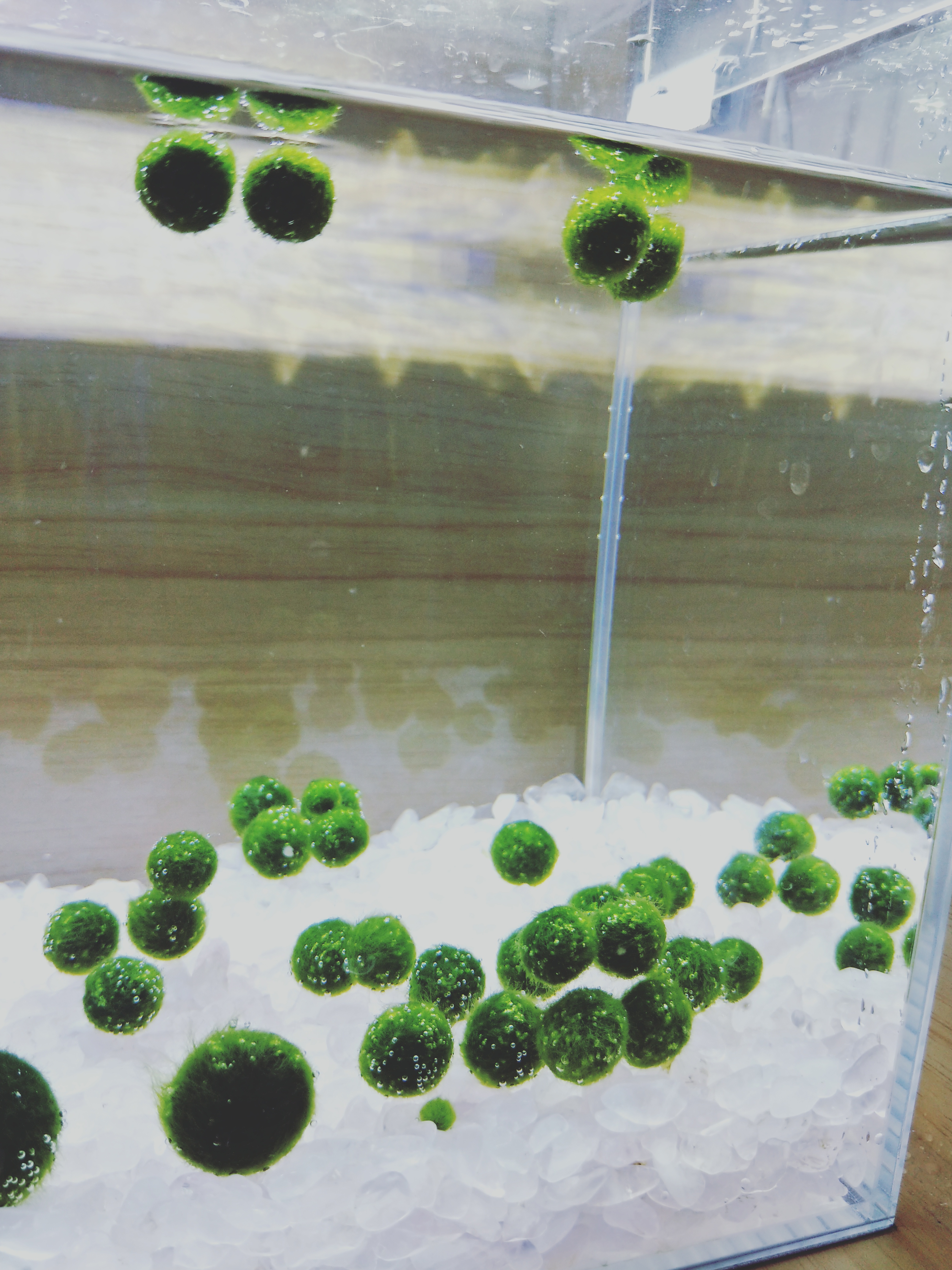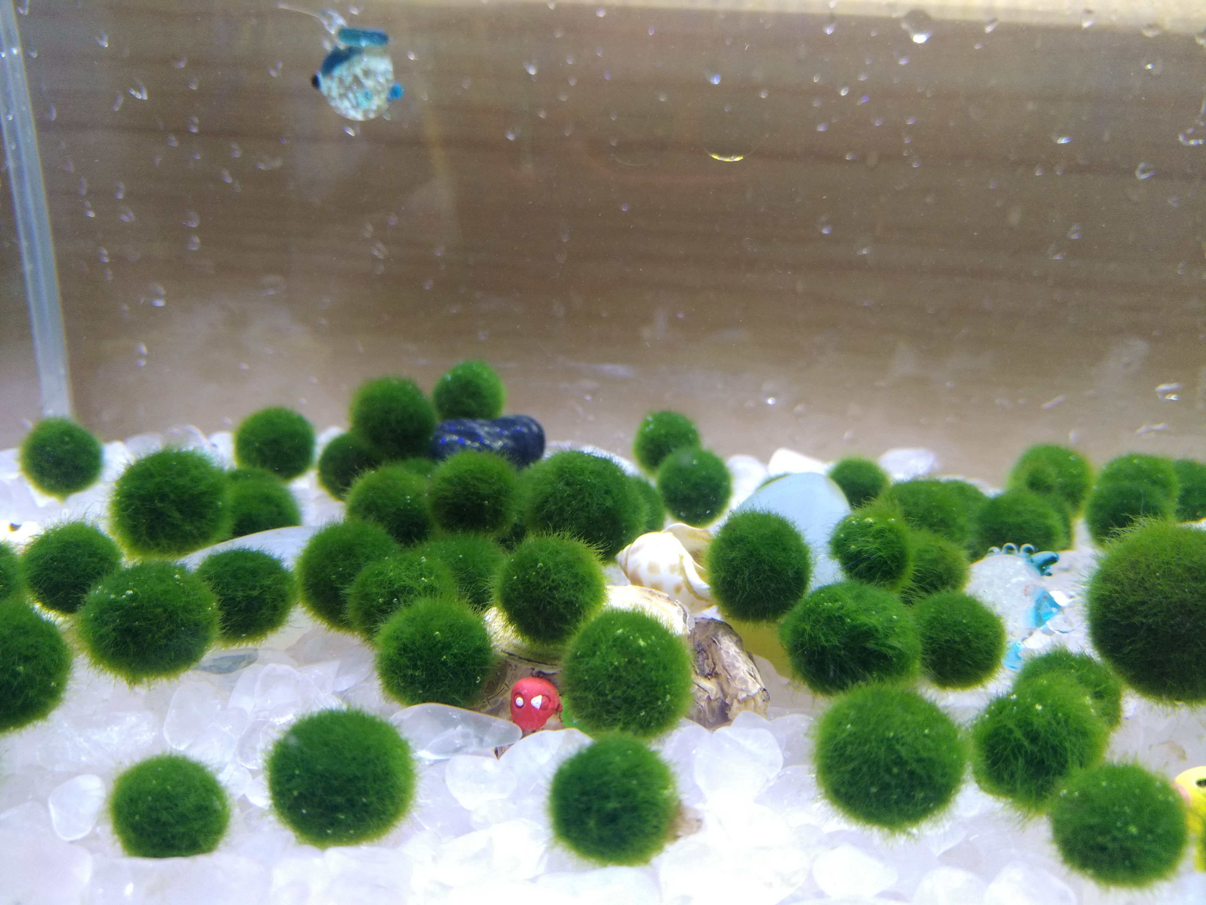 昨晚上换水,一个一个搓圆了。不然毛炸的不行。美得冒泡~