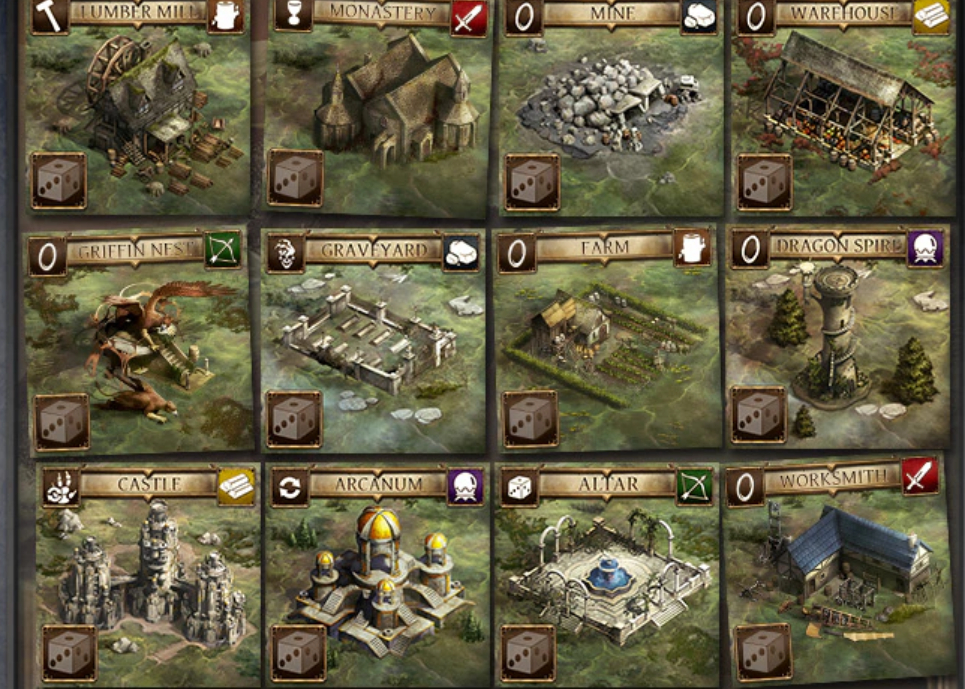 游戏优点:说夜曲是美皮德心其实都不太恰当,这游戏把美式的皮几乎扒了干净,就剩下点中世纪风格的美工了。游戏中几个玩家通过骰子轮抽的方式盖不同的建筑、招募怪物、完成任务、夺取圣杯(是的...这游戏背景就是这么俗套)。游戏美工是画铜板伯明翰和兰卡夏的MD大神,这游戏的卡牌美工也确实没得说,值得信任。另外看规则觉得这种盖房子、招怪物的模式有点像英雄无敌3,美工也有几分相似,感觉蛮怀念的。