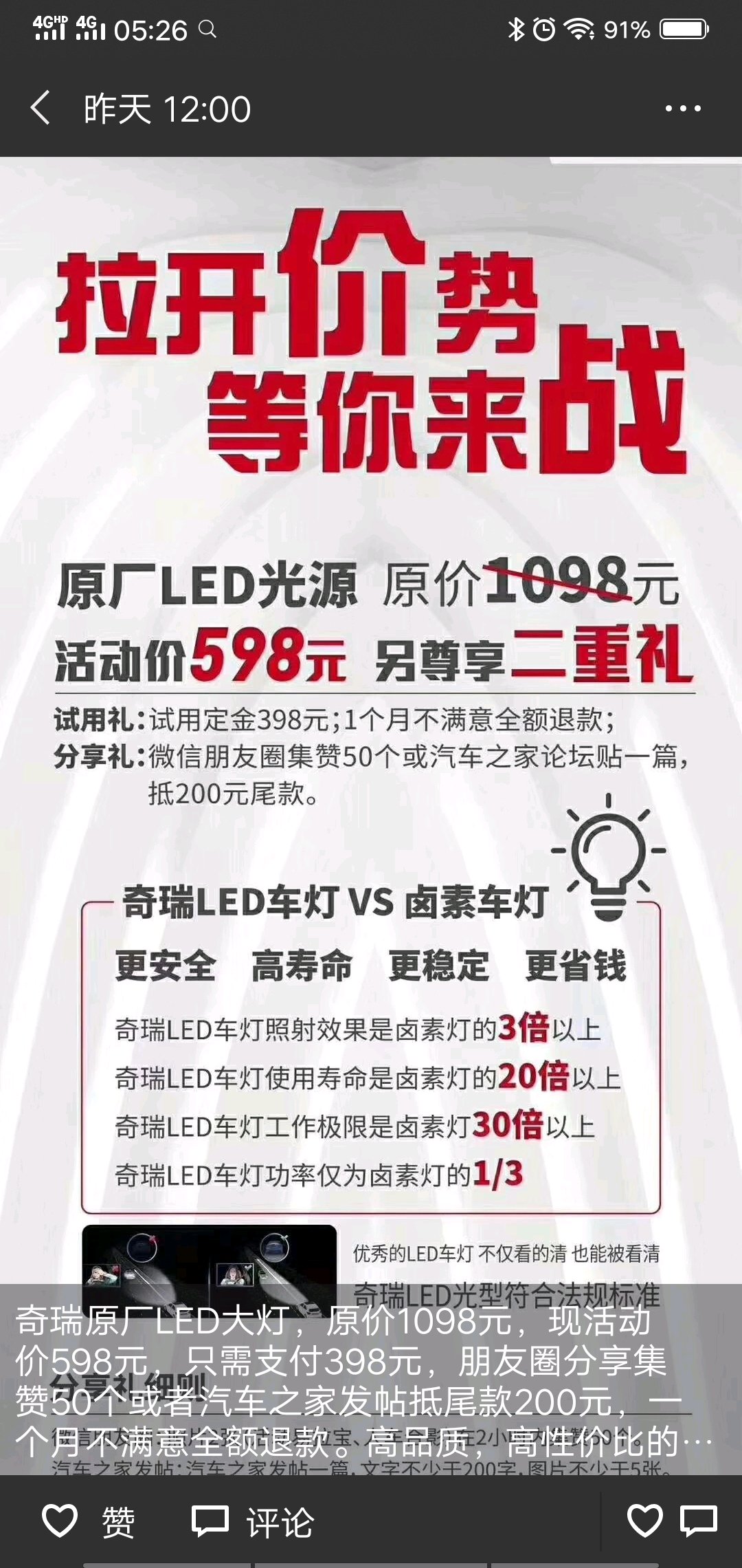 有必要换成LED灯么亲,各地奇瑞4S店都推广么?