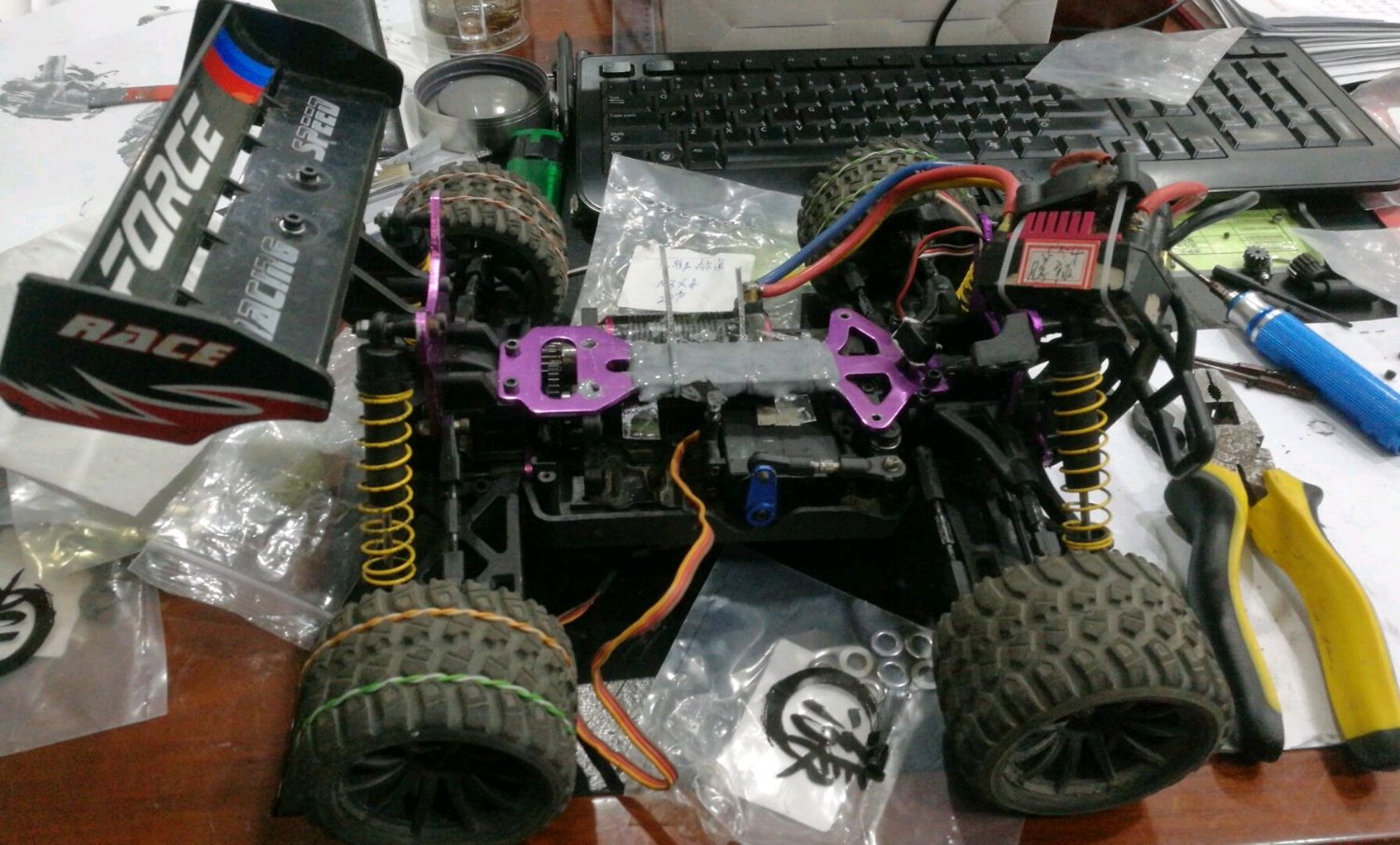 一年没上贴吧了,就是把724前后桥固定在734的底盘上,舵机用734的,连杆全用724的