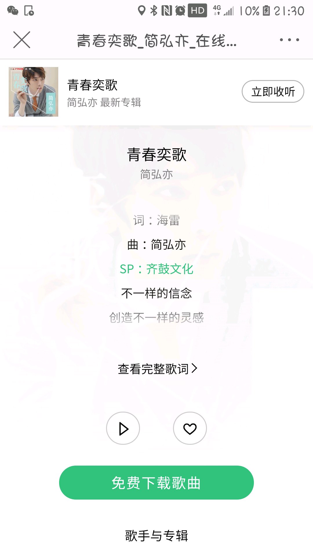 简弘亦,不知道你们认不认识,就是写不染的那个人,他参加了声入人心,这首歌是给声入人心的金主爸爸广汽奕歌写的广告曲,也许是因为简弘亦会写歌,也许是他俩名字里都有yi,反正出了一首歌。