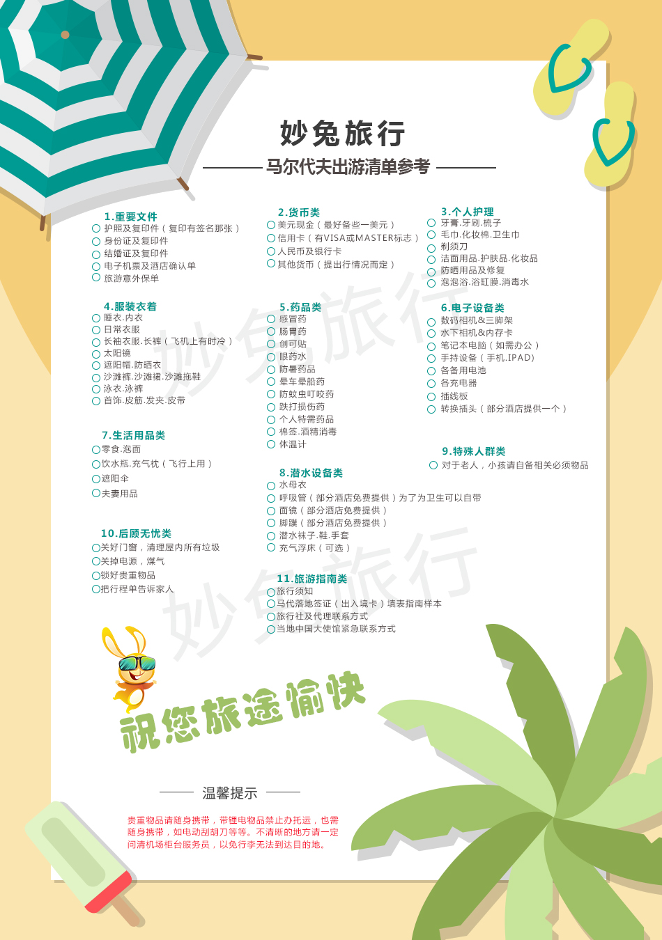 这是旅行注意事项清单,祝您旅途愉快