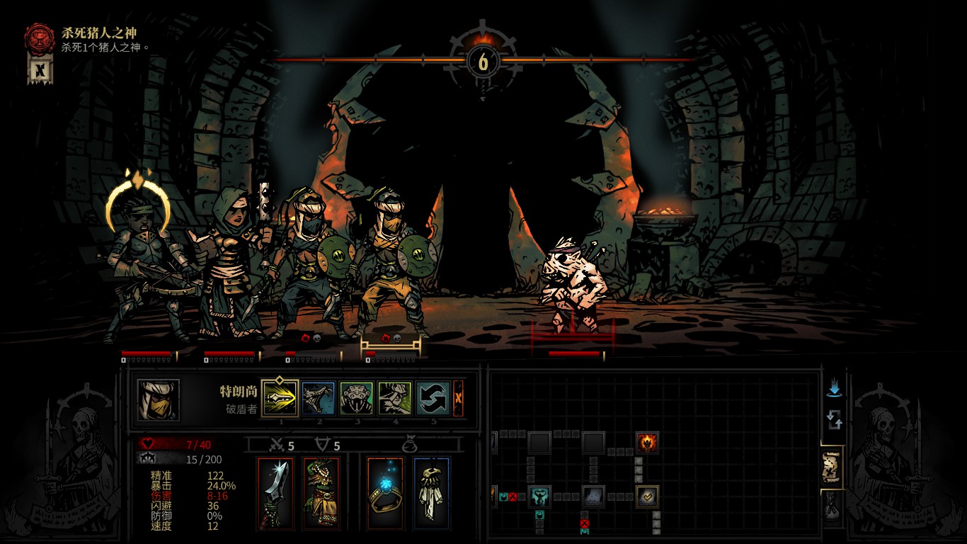 。。。这个怪,因为我一上来就怼死了小猪。。。暴走开地图炮,三回合就全体残血,然后靠苦修和修女拼命的拉血线,好歹是磨死了。。。千万不要先宰小猪,不然那个惨啊