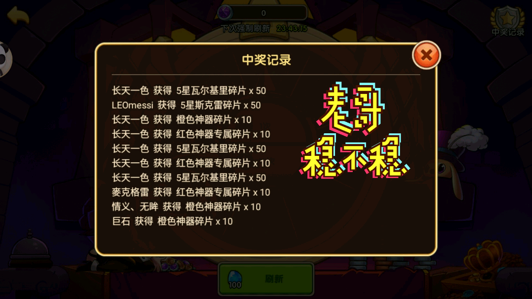123不容易 分别第5 50 123次出 尤其最后个 弹尽粮绝。棉花都换了 最后117 收了4个 第123次给了。