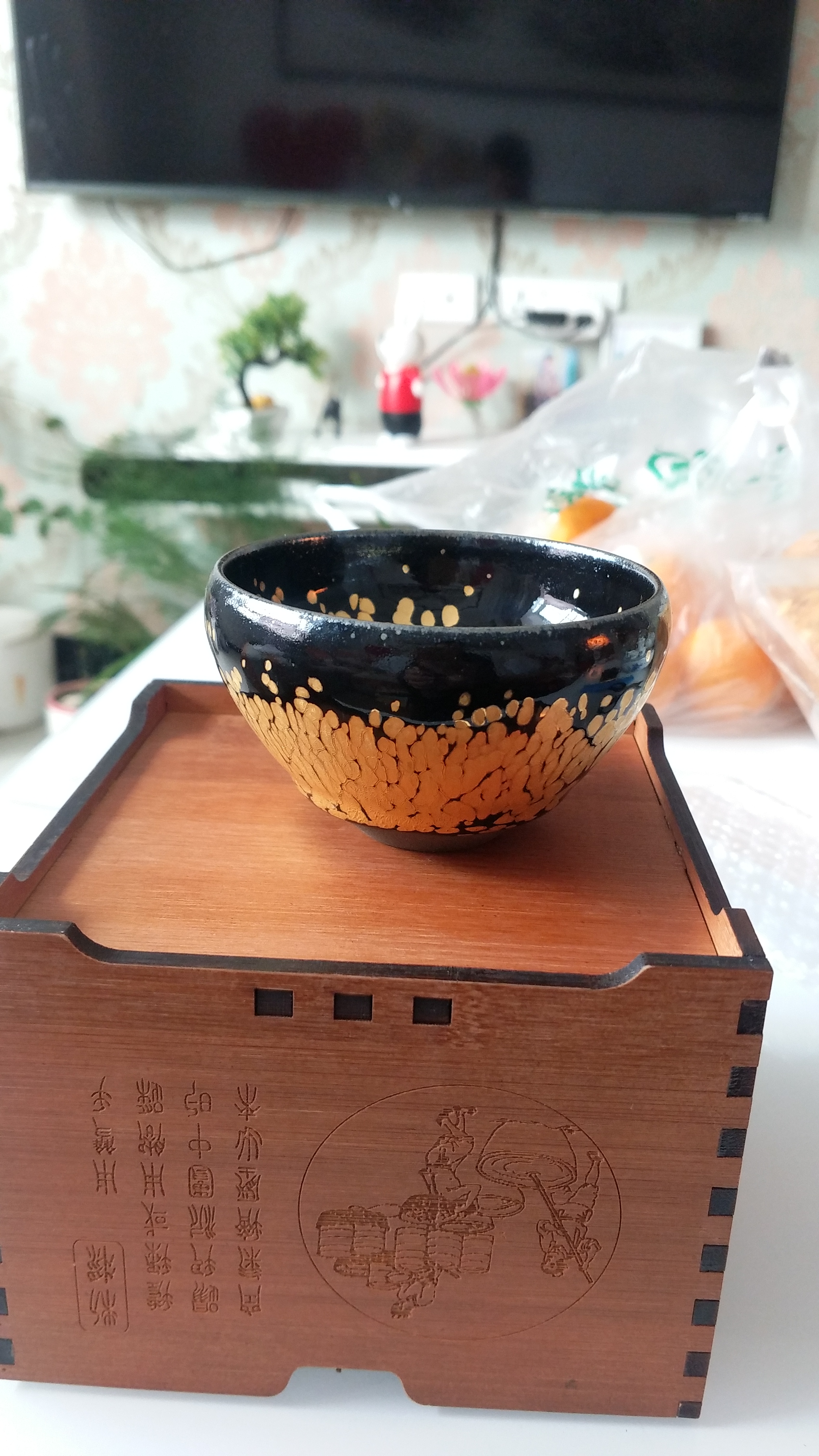 初入建盏,不知道这种怎么样?现在有点后悔,看落樱挺漂亮,这金盏不会出彩!