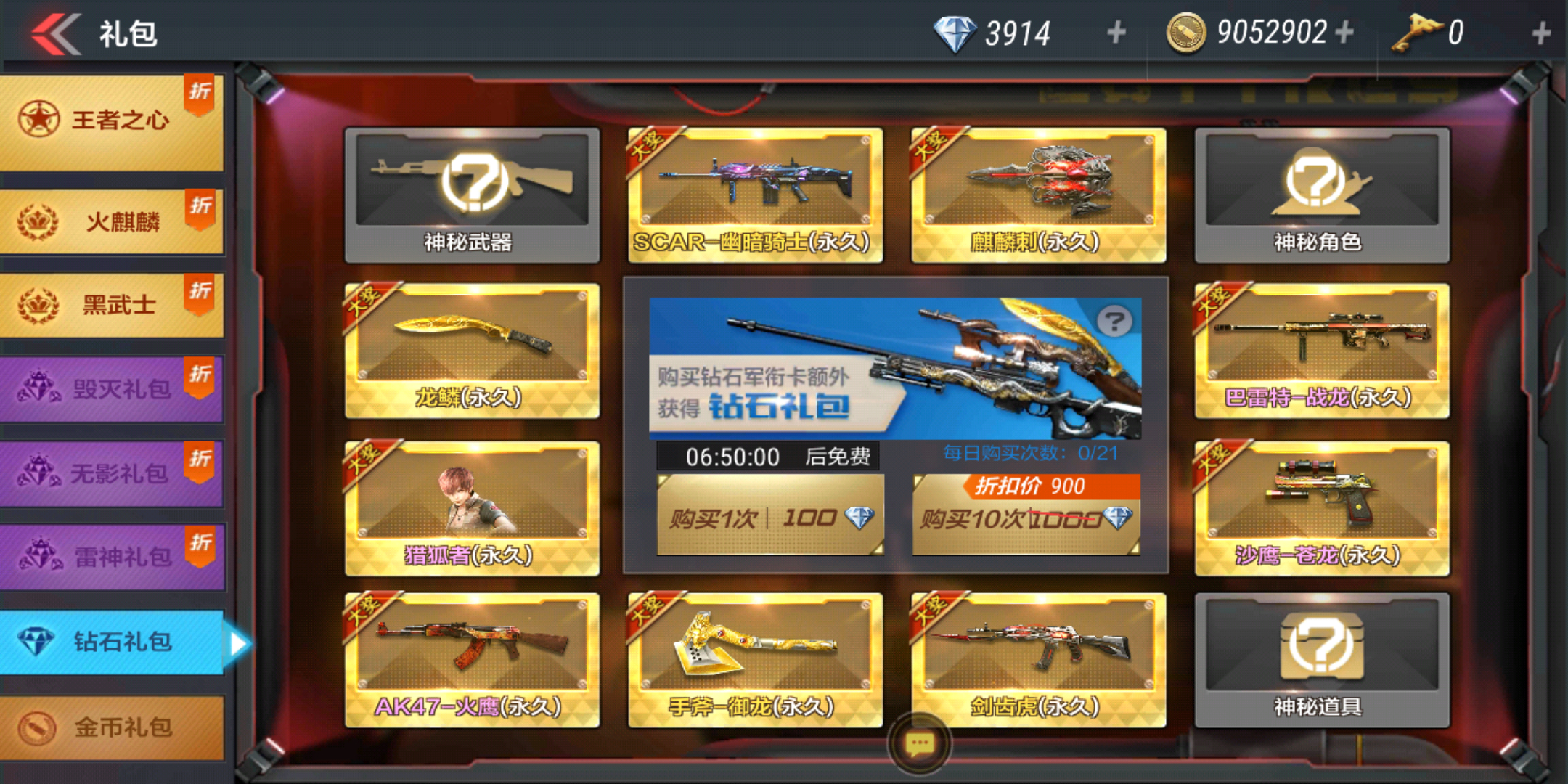 别说了,钻石礼包没有保底的