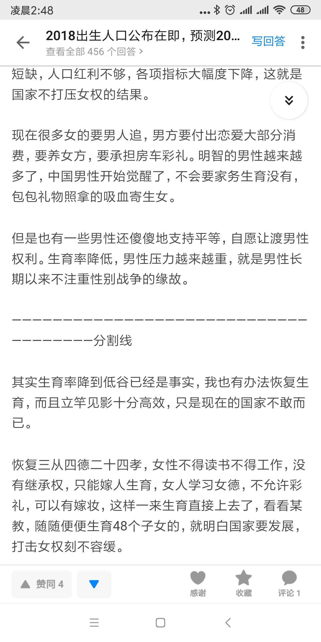 真是看的我自插双目,认真讨论知识不行吗?我去看了知乎的条例,对性别不能歧视、侮辱,我觉得这个真的已经算踩线了。我最最不能忍受的是严重开历史的倒车,还没人管。