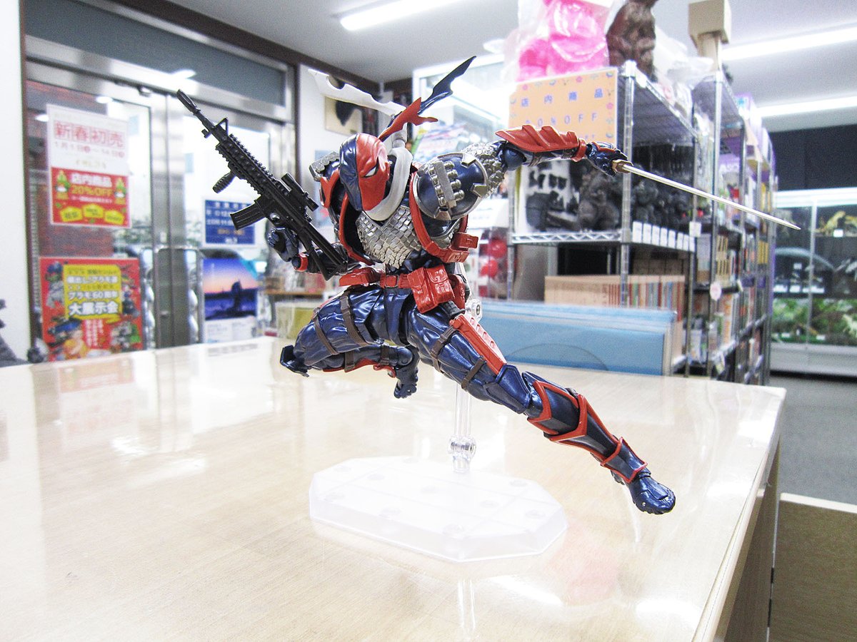 今月発売予定『アメイジング・ヤマグチ デスストローク』¥7,538(税込) のサンプルが届きました。彼の特徴であるマスクや、細かく表現された装備品、その間から見える、筋肉の隆起はコミックスそのもの!傷跡が歴戦の風格を漂わす、素顔状態のマスクオフパーツも付属しています。