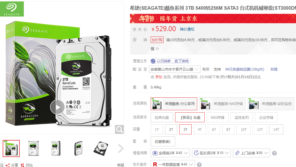 其他两家2TB以上的都是256M叠瓦式5400转掉速盘,只有这家还是64M垂直式7200正常转数的大容量盘