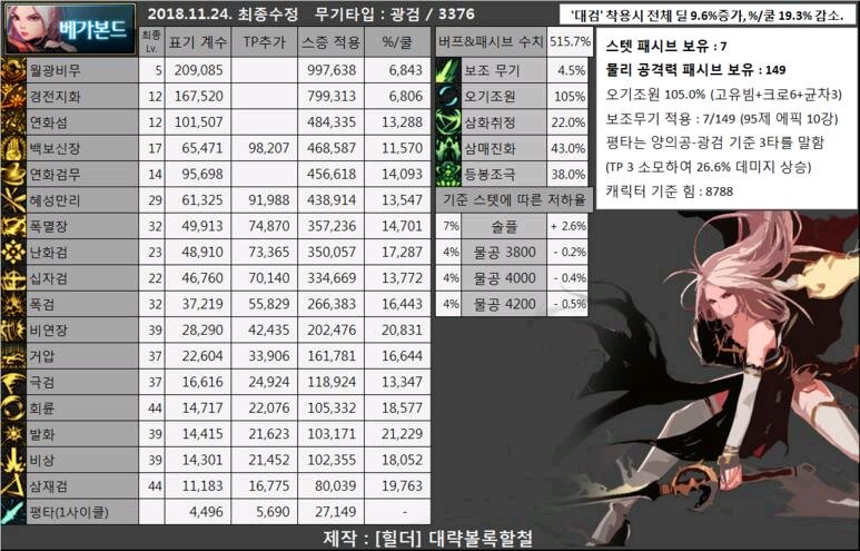 我们发现95版本技能百分比图中基础攻击取的是3376(光剑的数值) 而90版本的图中取的则是3500(巨剑的数值) 因此就出现了技能百分比提升小或不升反降这个现象