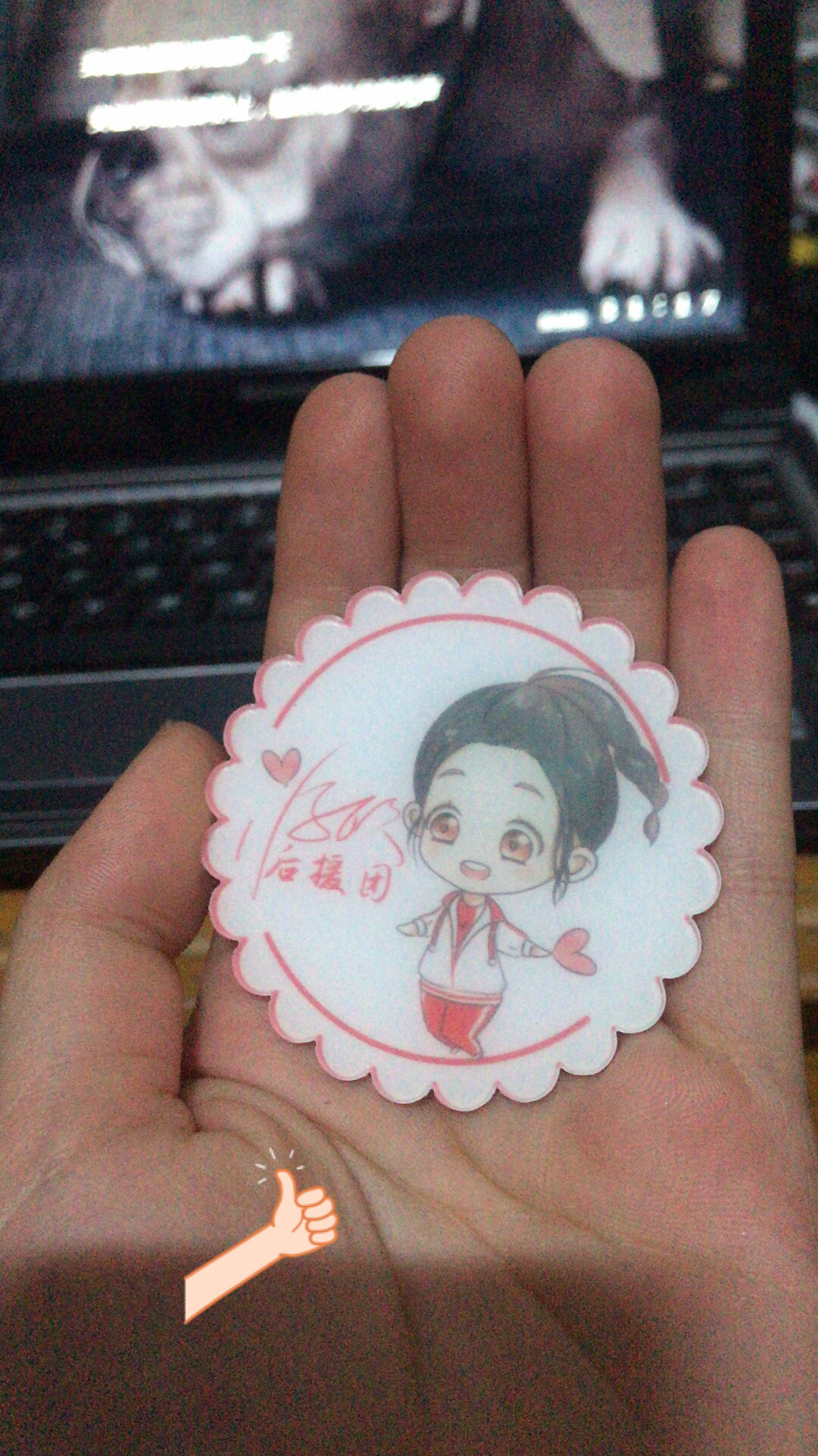 十五周年了,为迎接每一位新成员的到来,我们特地准备了蒋欣吧后援团徽章——掌心里的宝主题礼物,赠送给每一位加入后援团的欣羽(邮费自付,家里没矿………也要做预算的