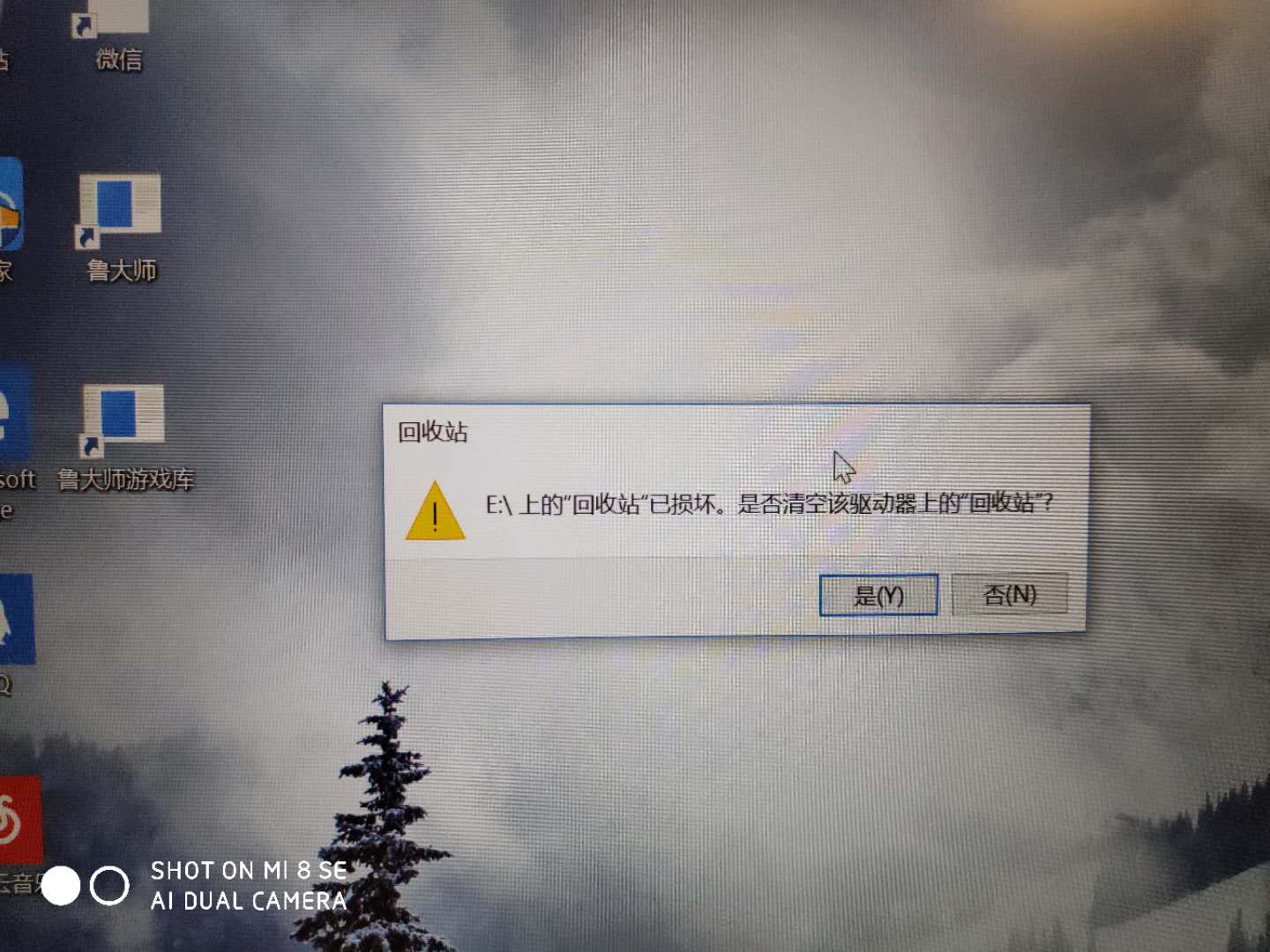 新买的惠普745G5,我自己手动把C盘空间分出来一个E盘。结果显示E盘上的回收站已损坏,是否清空该驱动上的回收站。如图,请问有人知道咋解决吗