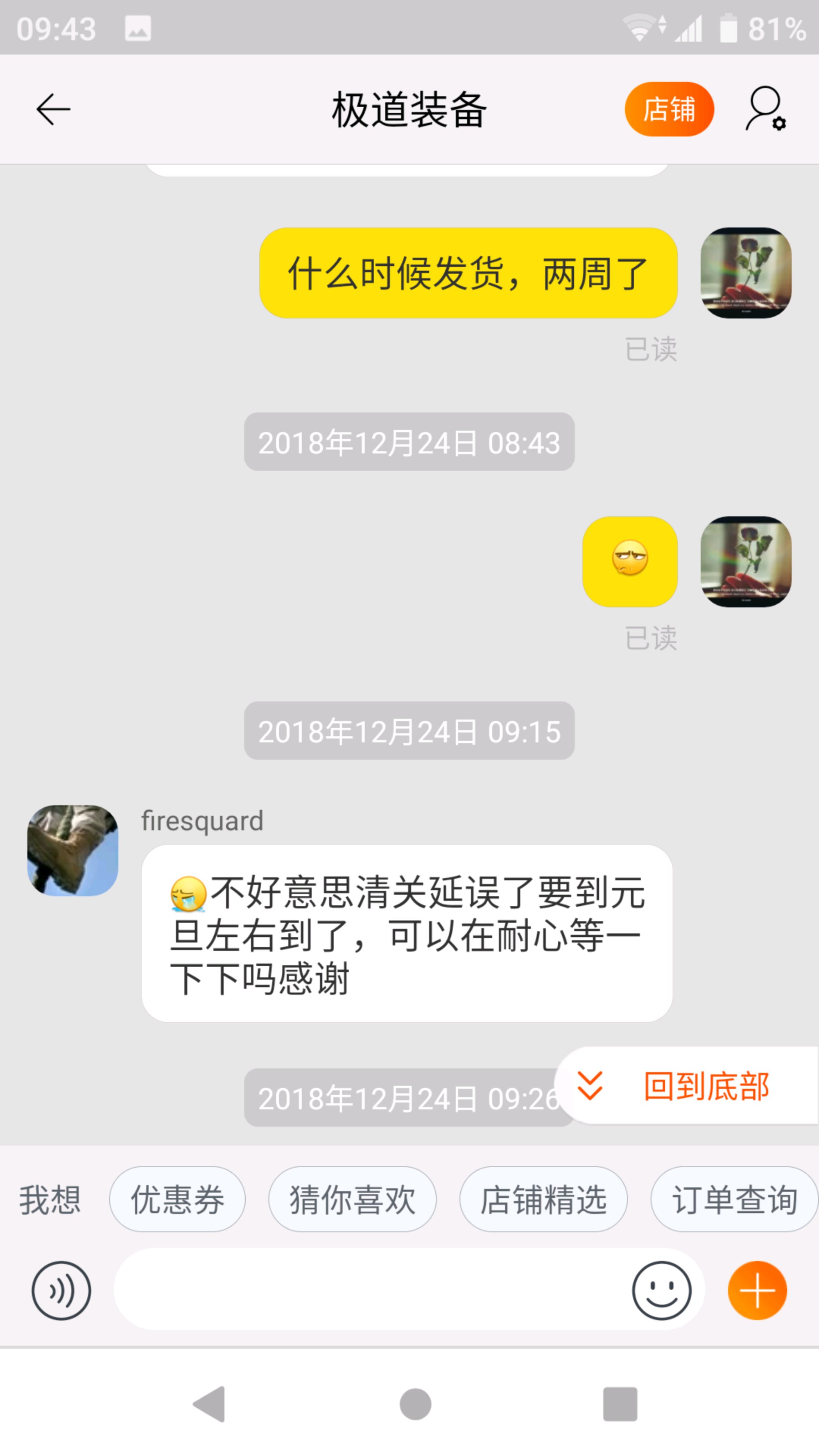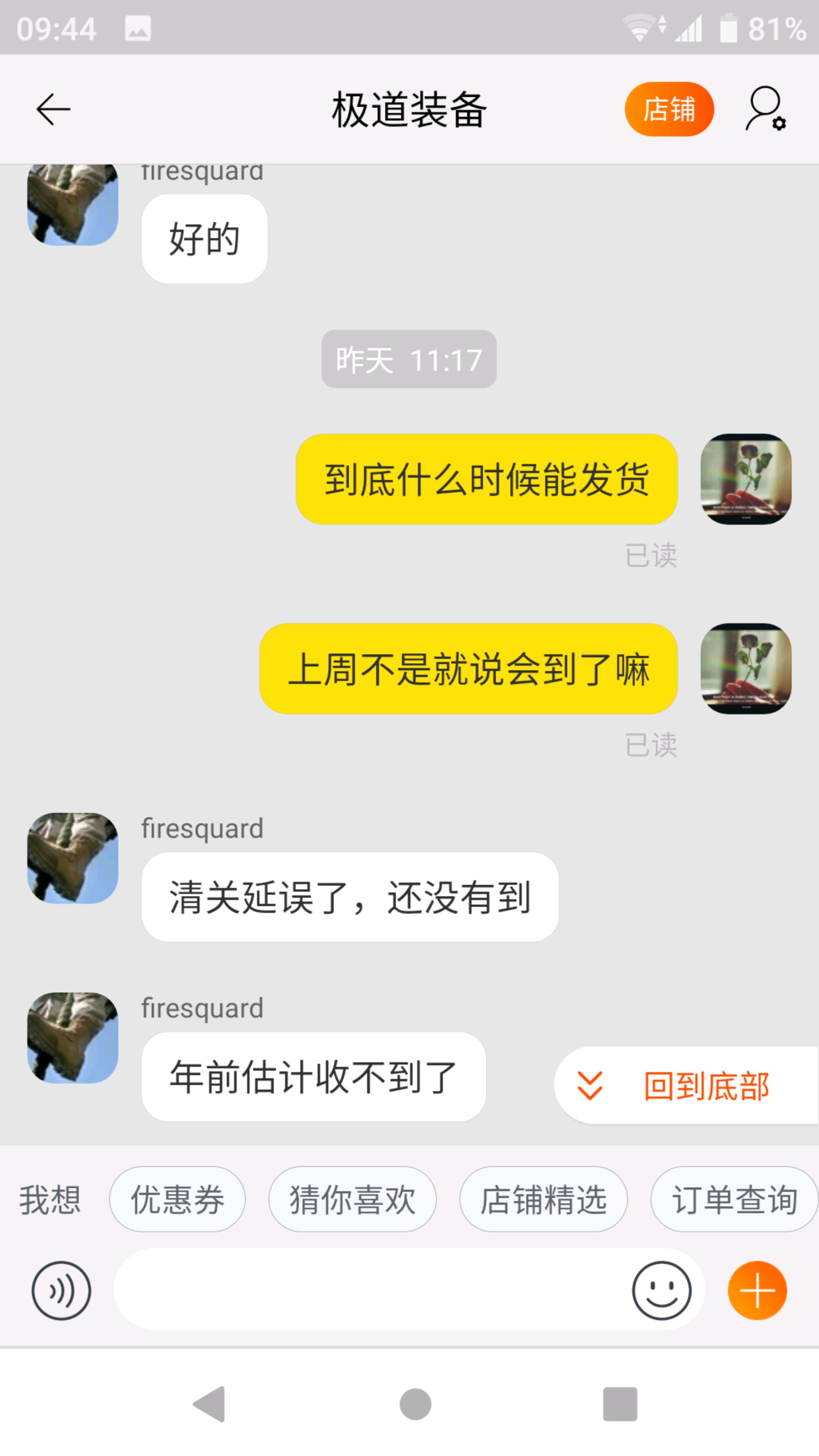 遇到这种事没办法,他家东西倒是不错,消消气吧,我之前都是买现货,还没遇到这种情况