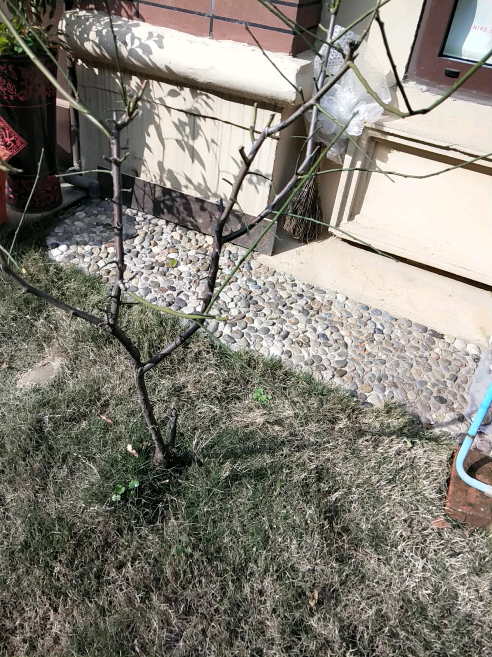 修剪下,枝条太长了,然后喷下磷二,梅花随便怎么种都能开花,我家的都种盆里的