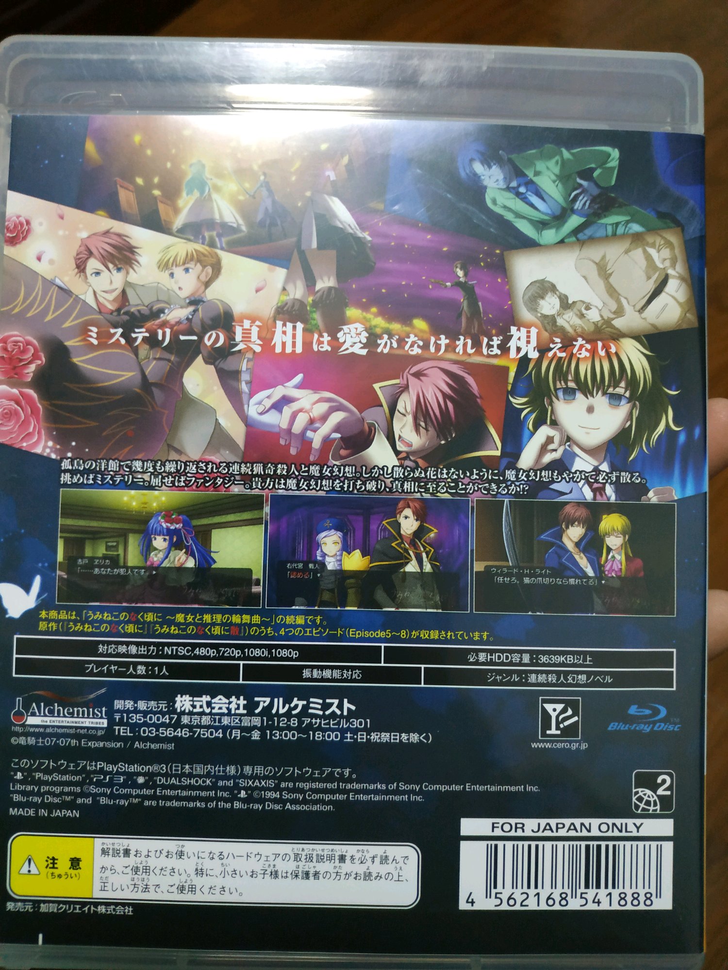 PS3版以前因为很贵的时候没买,结果居然某宝上买不到了,不过最近还是终于入手了,虽然是老游戏了,但入手一刻还是很激动的,希望PS4什么时候跟寒蝉一样出个海猫合集就好了