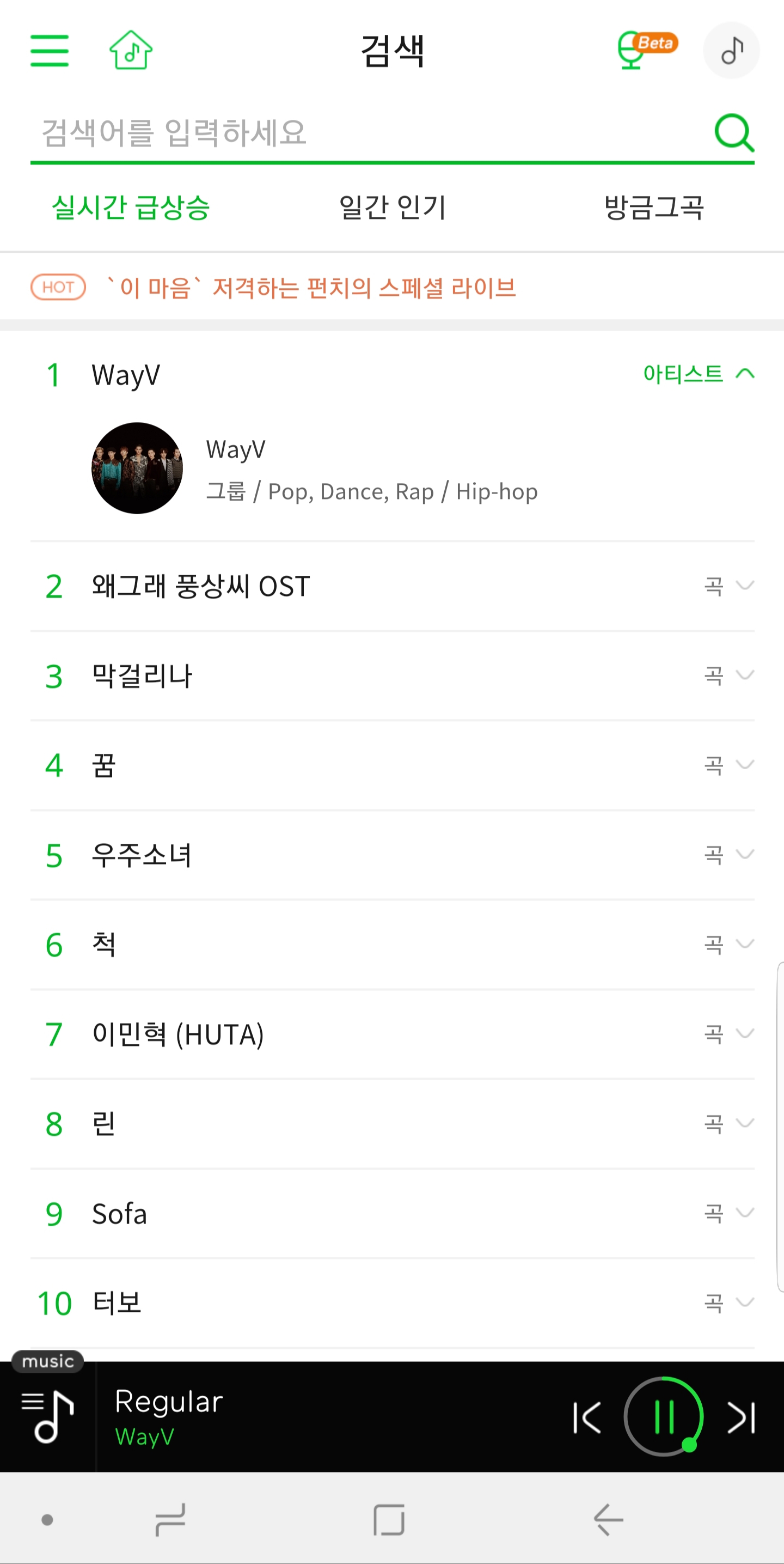 弄错了。这个是멜론 실시간 급상승.