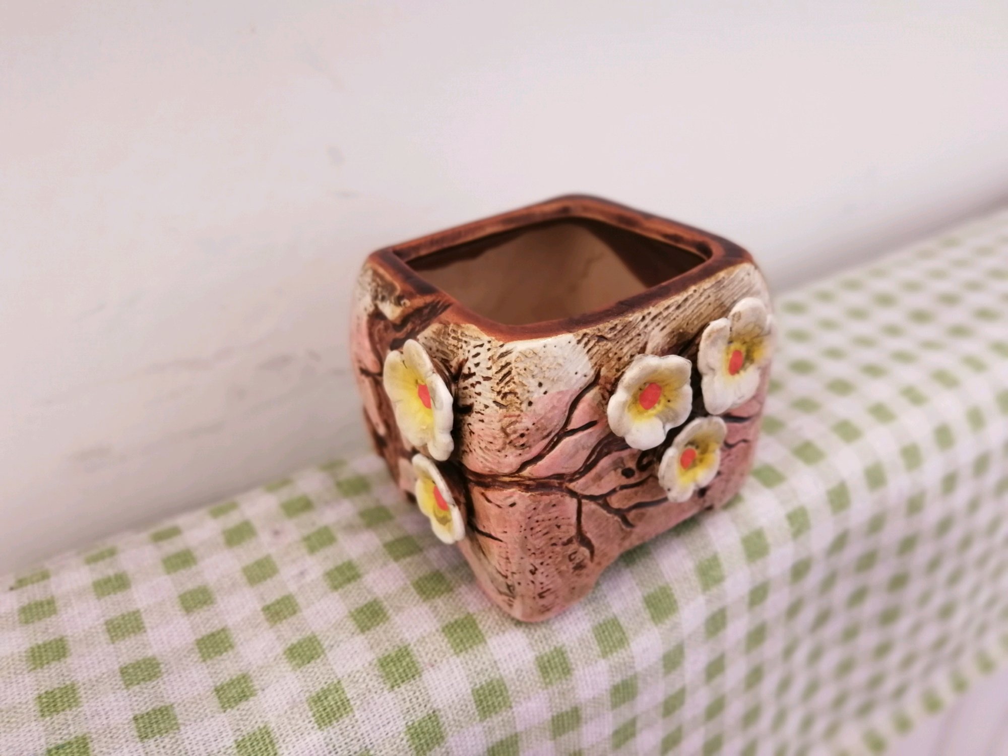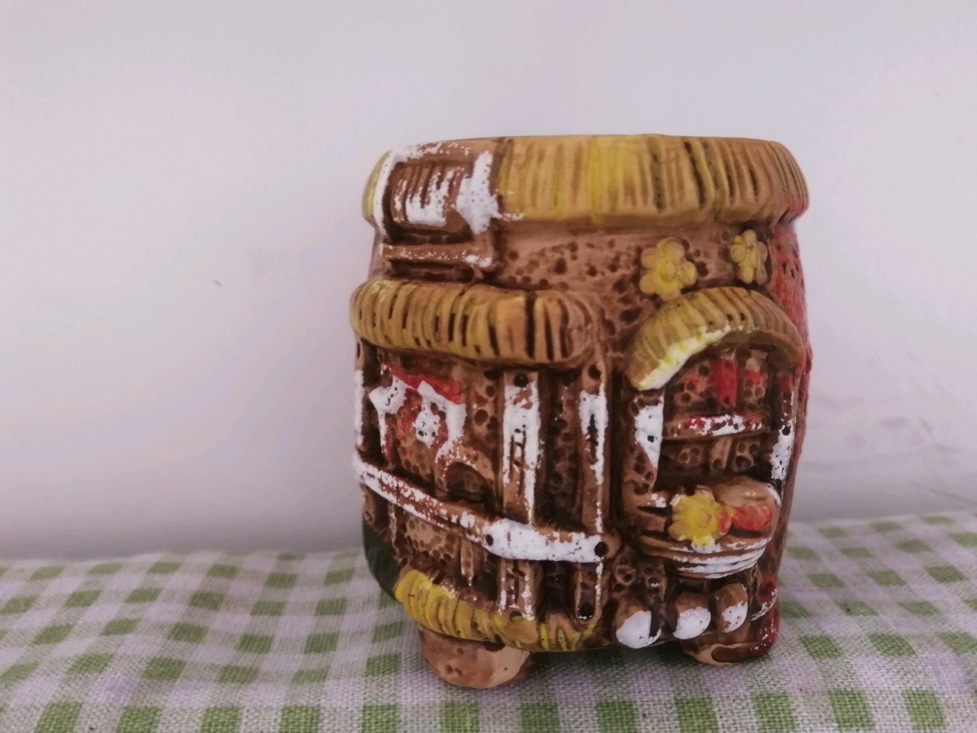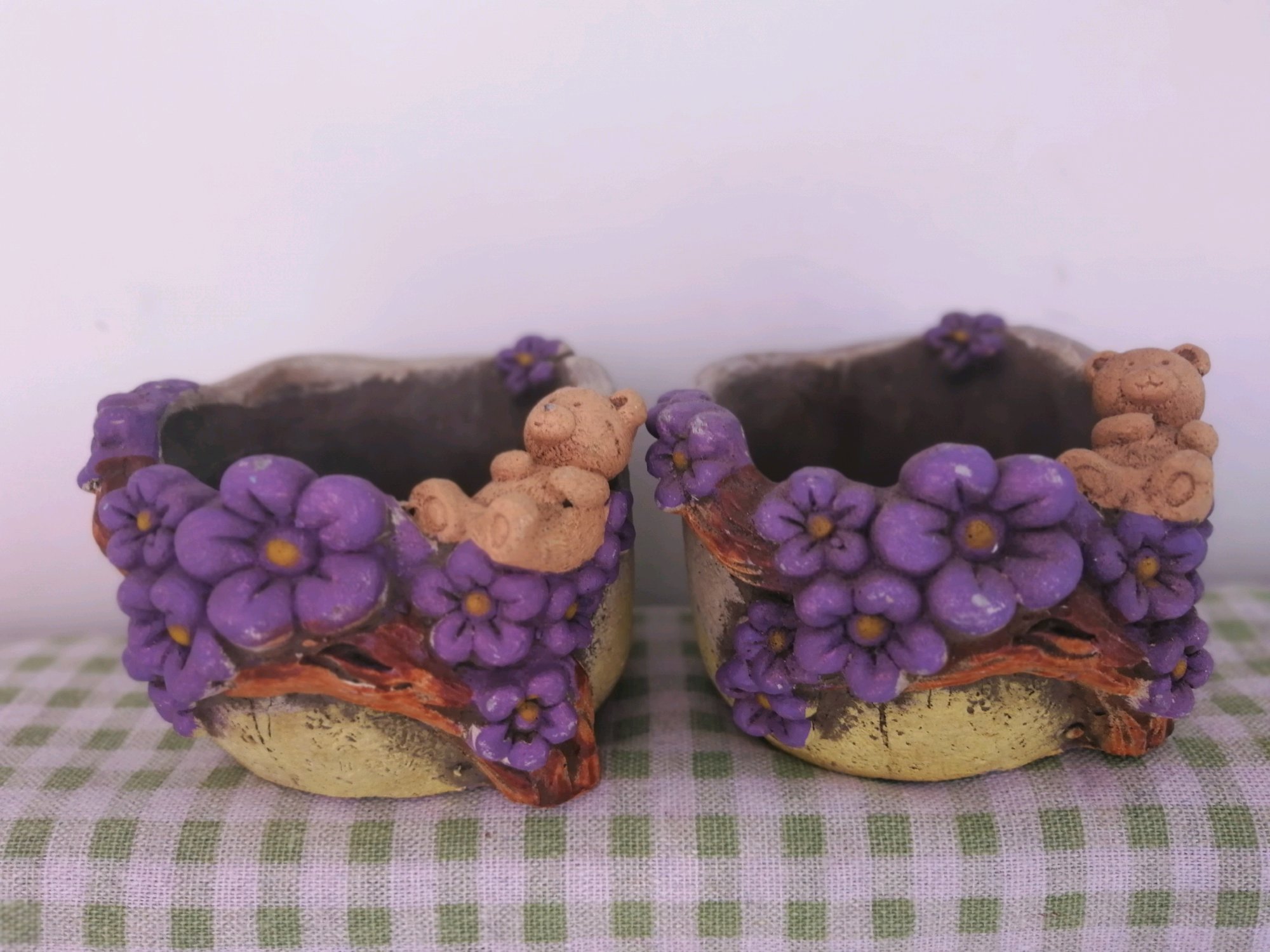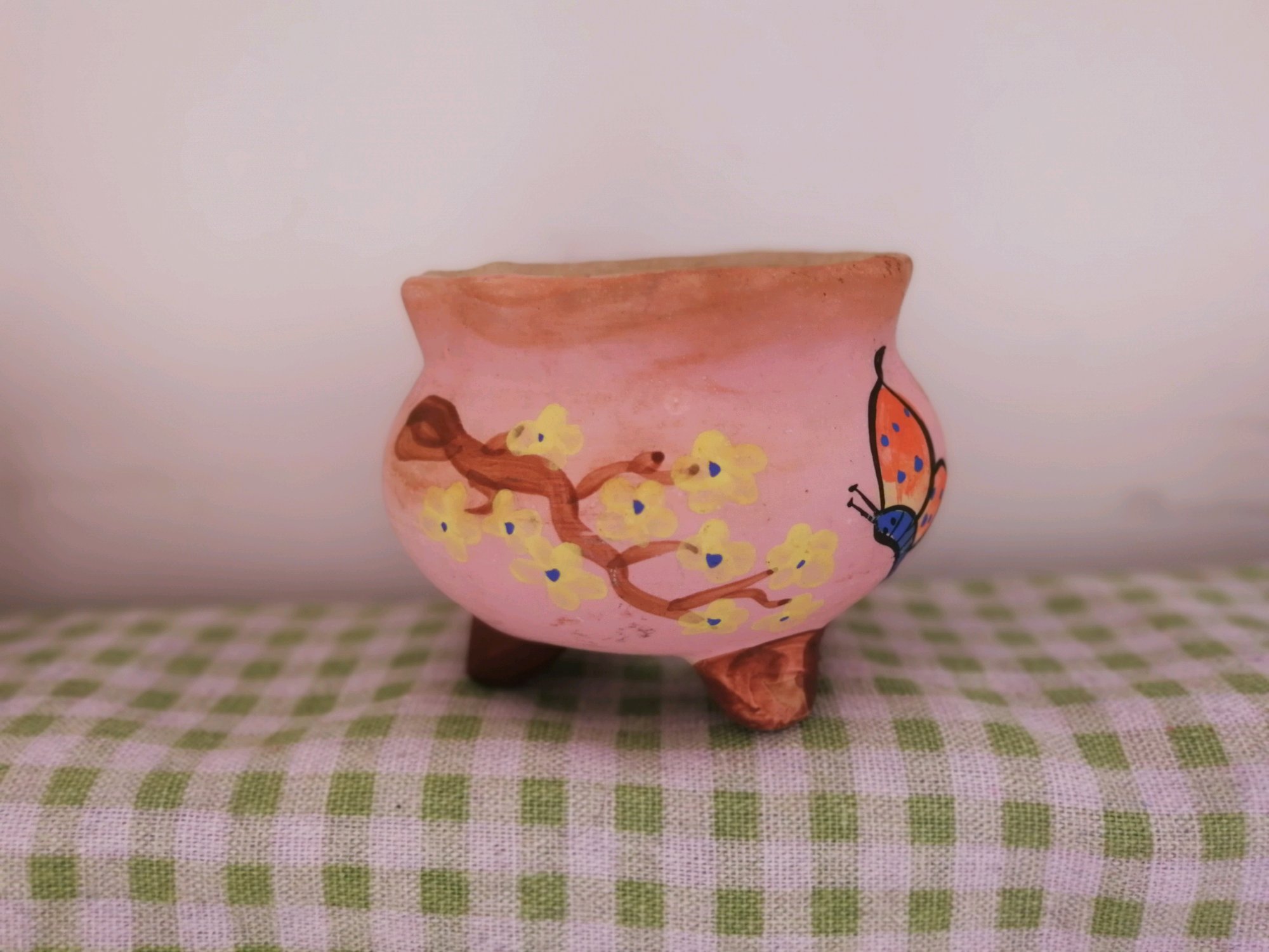 手绘盆 晒脱色了 2一个
