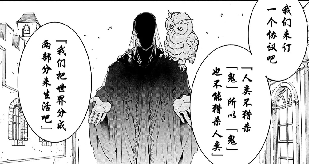首先要说的一个前提是,有一点感觉很多人都没有在意,主角他们从颂诗那里得知的约定内容其实是【人不能猎杀鬼,鬼也不能猎杀人,把世界分为两个部分来生活】,这个约定里并没有包含关于食用儿童的内容,所以其实并不存在【人必须要向鬼提供食用儿童】这一条件,知道了这点之后,让我们开始按着漫画给出的线索跟进主角们对于七面墙壁的探索吧