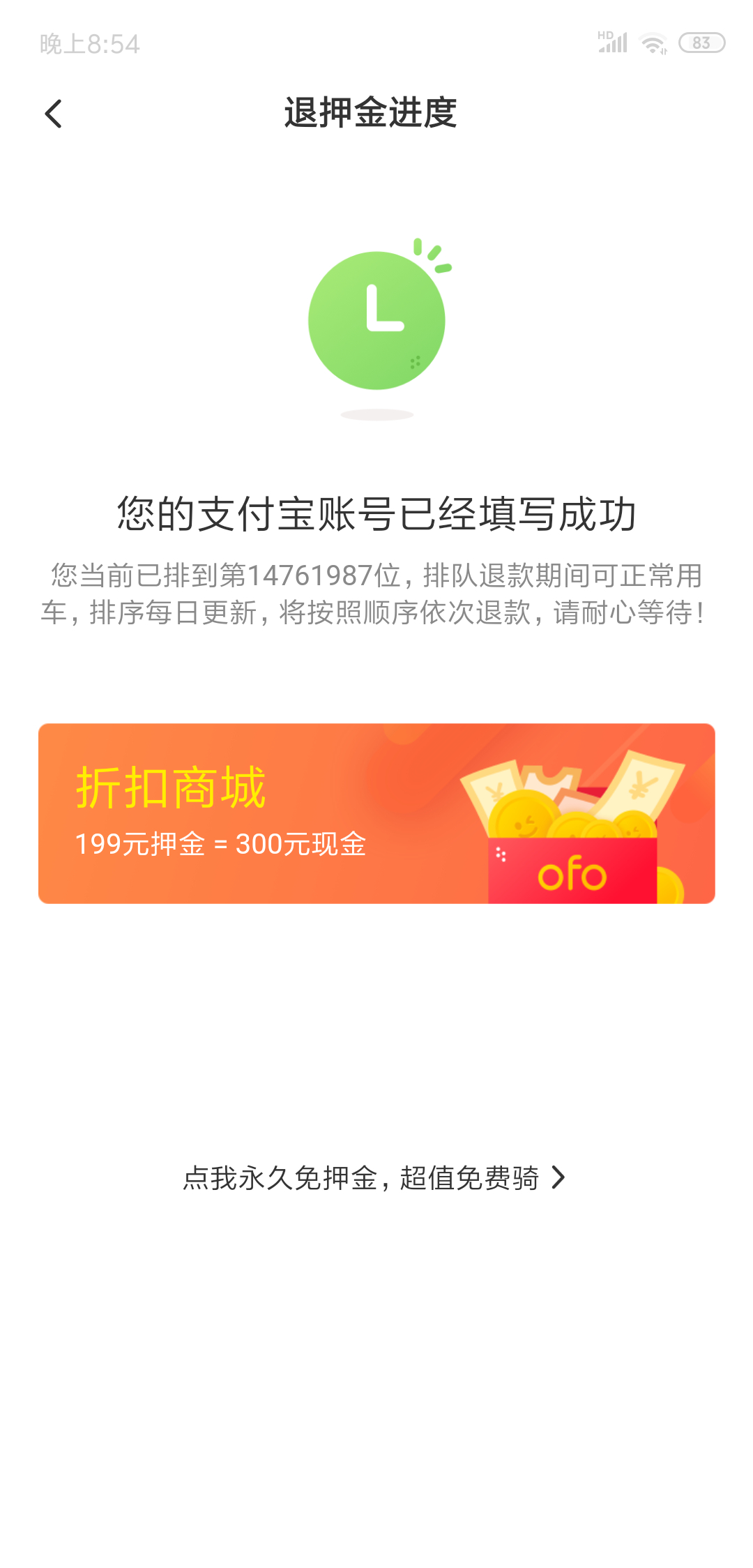 这个。我在支付宝上用的。然后就骑了5分钟。我想退押金。但是现