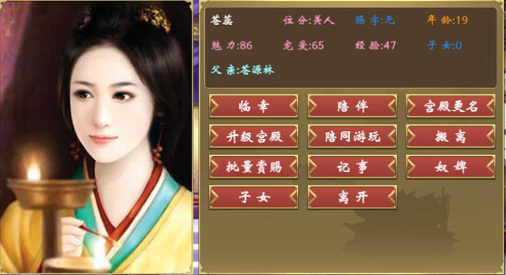 苍蕊,本姓已失,受恩封以苍为姓,是太子母妃为其挑选的教导宫女。在太子满了15岁后便放在身边,负责日常贴身服侍。苍蕊容貌姣好,性子娴淡,常不发一言,只做好手边之事。由于宫女出身,性又不爱生事,常常存在感不高。太子点灯夜读之时便会在一旁做针线刺绣,亦能陪太子秉烛手谈。灯下看美人,苍蕊那虽美却没有记忆性的面庞,在灯光辉映下便会显得格外温婉。
