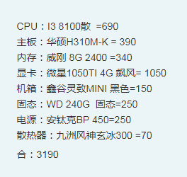 i3.8100+b360+16g+rx580.4g配航嘉40