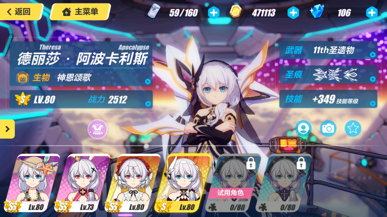 初始s全部ss,炽翎94碎片 差6ss,冰八140碎片未解锁,其他都看图吧,还有什么想知道的下面问。皮肤有几个