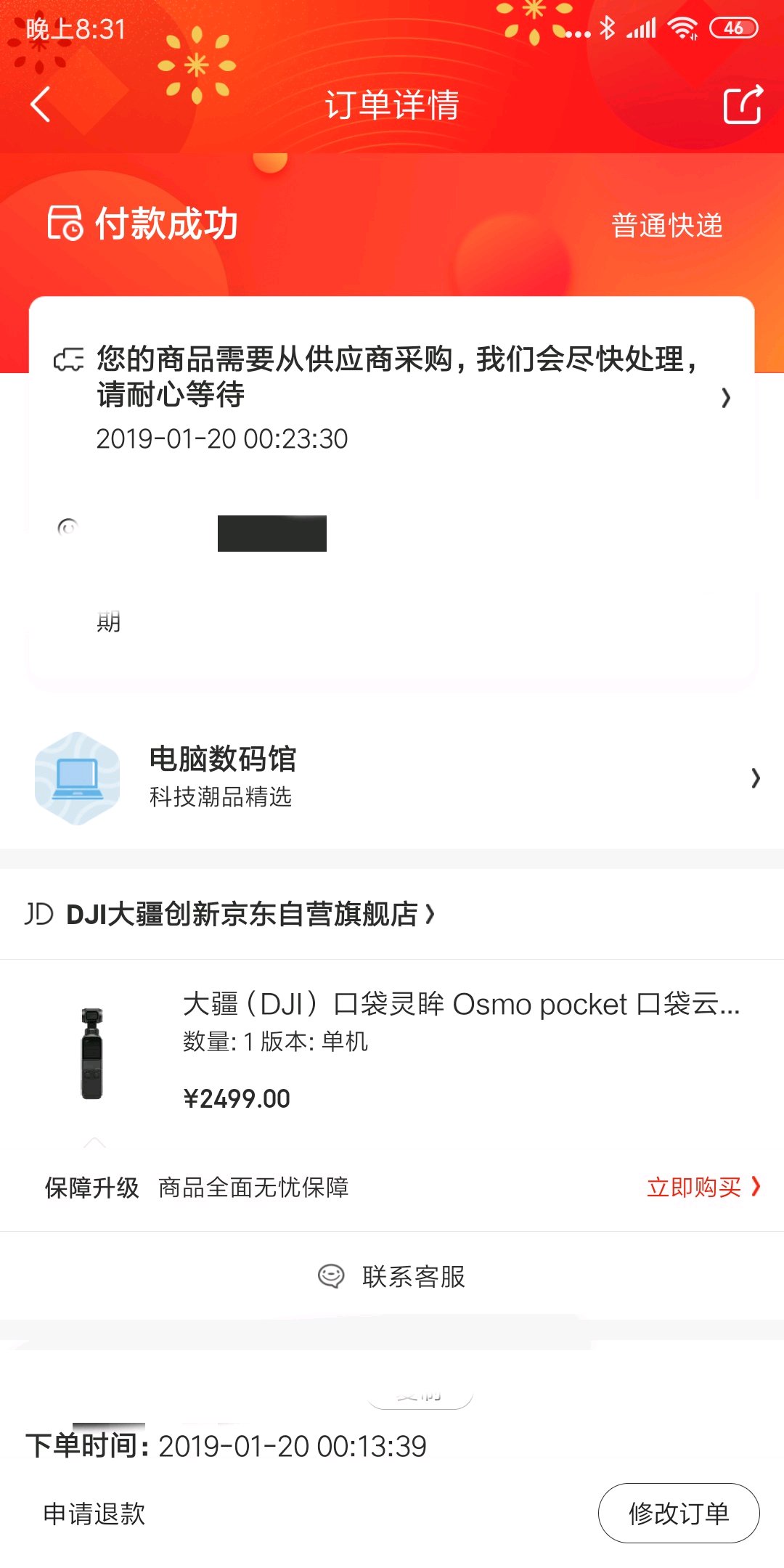 我早上直接实体店提货了,不要京东的优惠了,客服说27号才有货,还不一定有这周定的,都快过节了。
