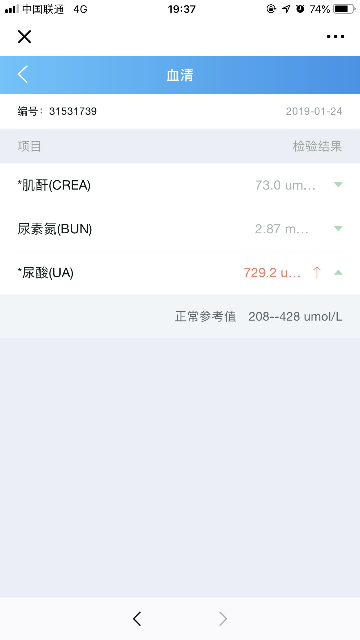 我今天刚复查完,尿酸620,其他没什么问题,还是那句话,没事多喝水
