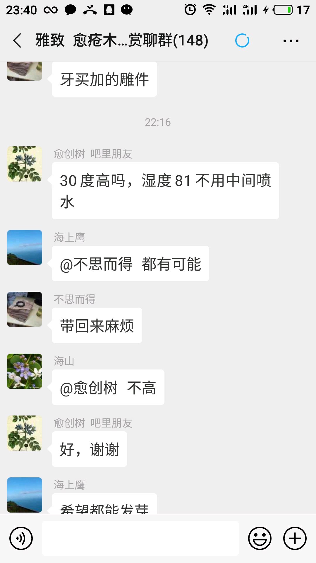 愈创木 一个陌生木头 优秀的木头 ,通过贴吧 传递给了更多的 爱好者 ,大家在一起互相交流学习,增长了更多知识,拓宽了文玩的视野 ,随着社会进步 - 信息的传播有了很多方式 - 目前 有个侧重于研究推广愈创木的微信群,又给大家提供了一个 精神会所 ,齐峰先生创建的这个群给大家提供了一个更加便捷的交流场地,希望大家更多的参与。