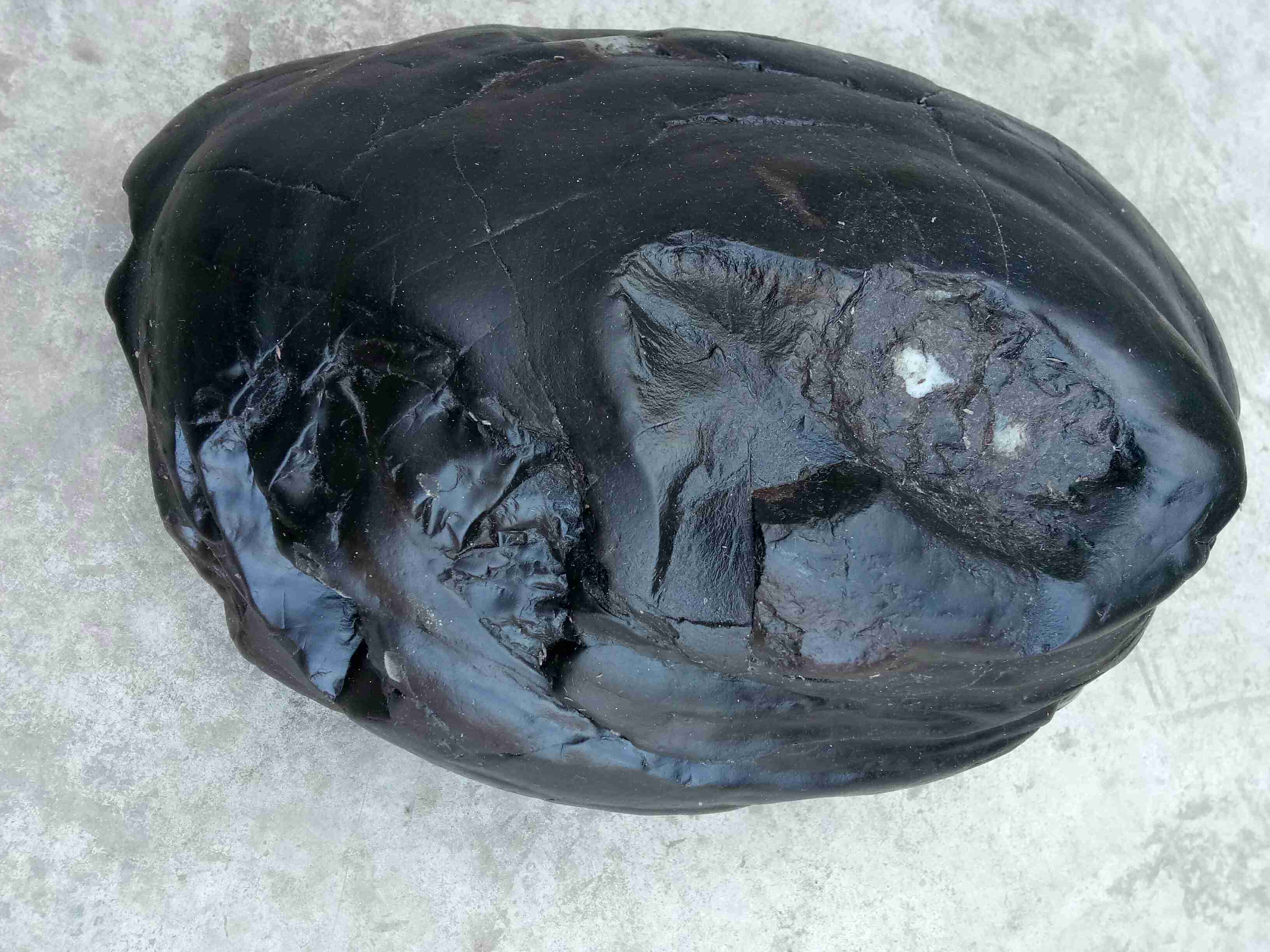 求大神们认一下,此石不知是什么石头,整个石头都是融化形成的,有落地的泥土,石质非常细,大师们评论一下!