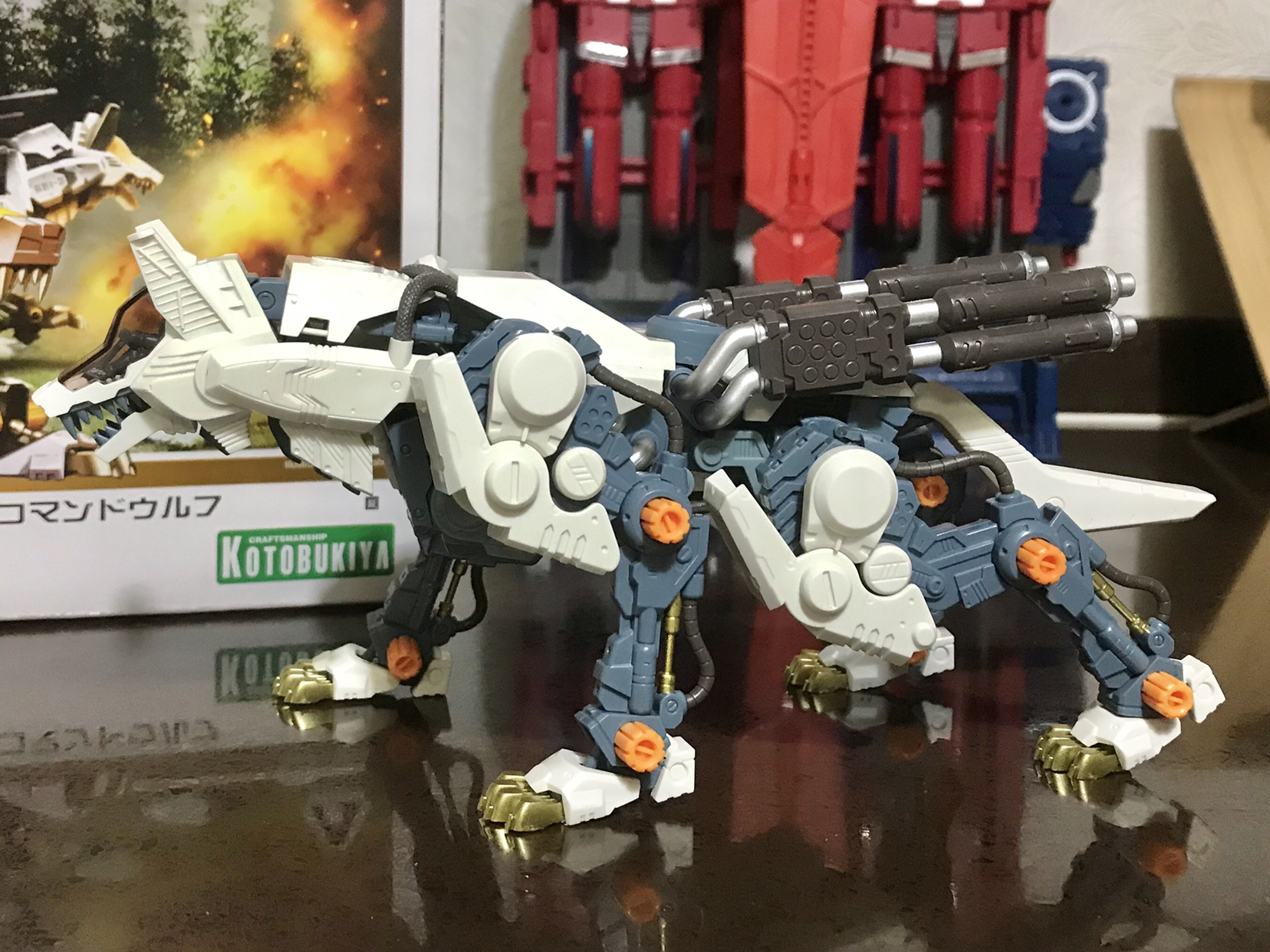 过年前倒数第二只堆积ZIODS RHI-3机动奔狼Repackage,4个多小小时的快餐,白狼主体完成,这只的拼装简直是舒服,比前一只长牙虎版件强百倍,这只可动和重心把握的都很好,可以摆双腿站立pose。一会继续武器部分……