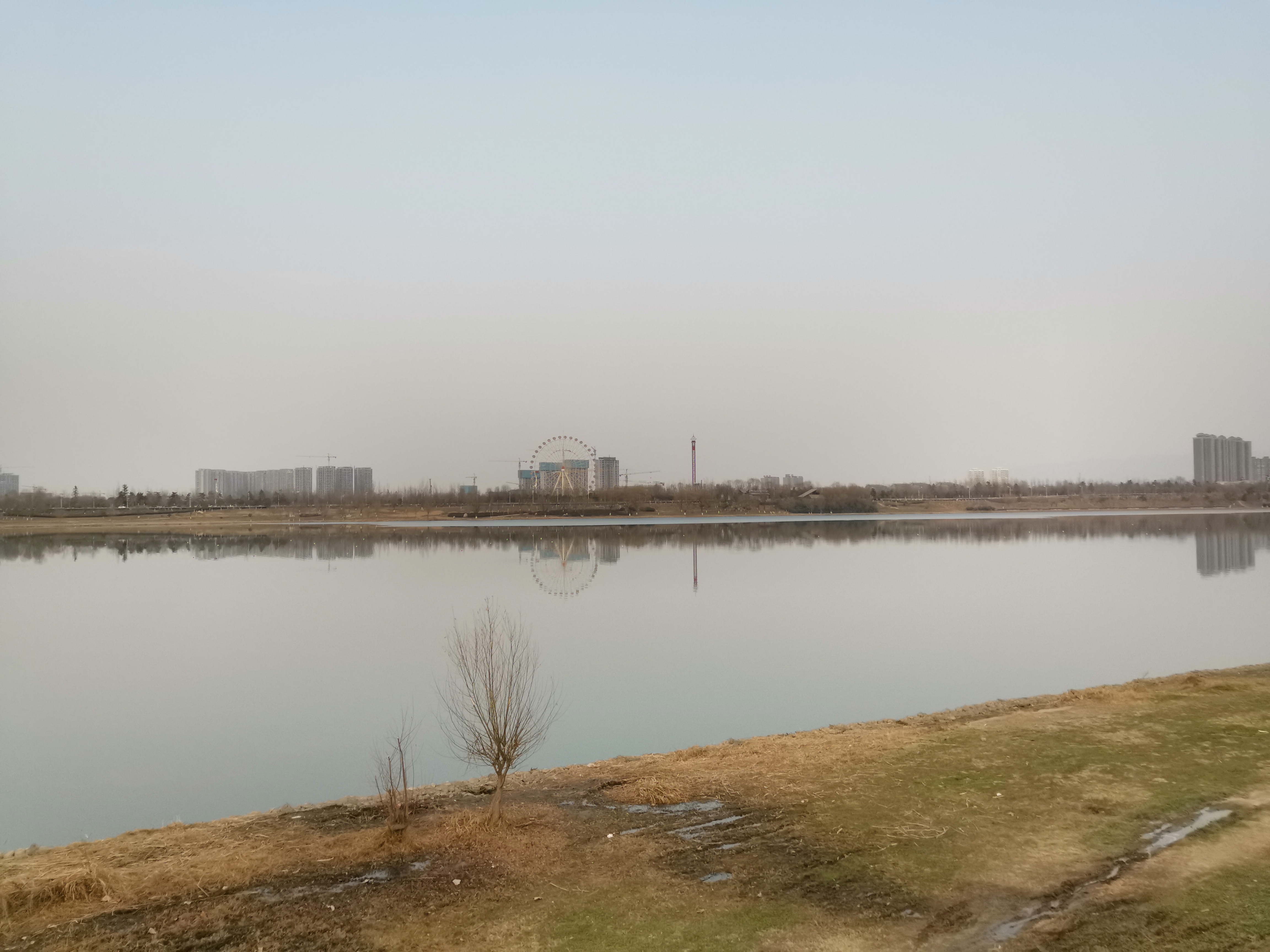 这是一个冬天,一个没有颜色的季节。在西安在灞河,在世博园旁,用荣耀magic2手机去记录一下,这里的湖光水色。
