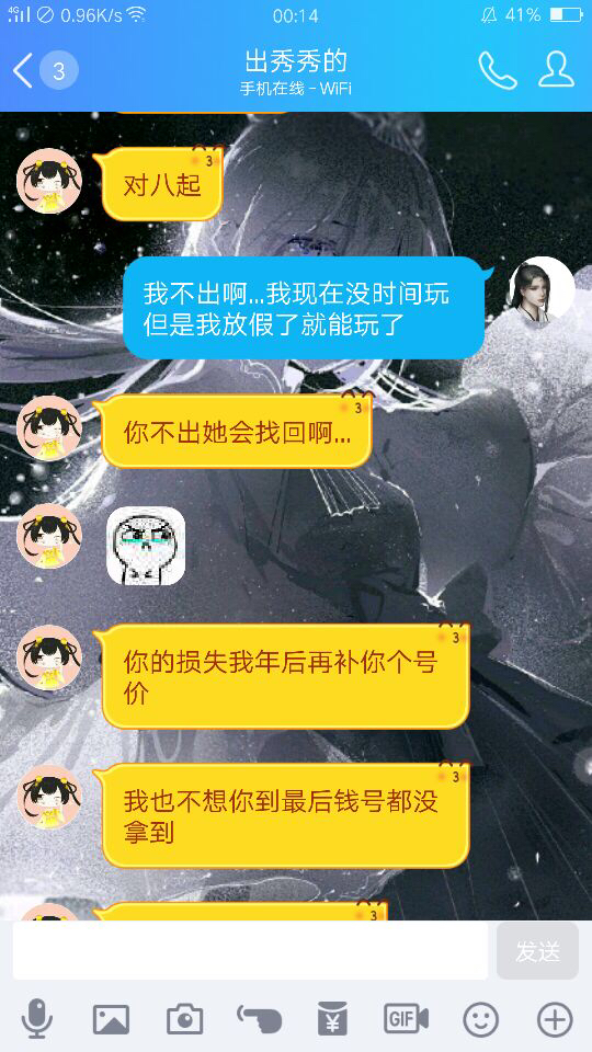这号虽然不是什么心血号,添的外观也不多,好歹是我认认真真玩了几个月添了自己喜欢的头发和拓印的号吧?一声不吭直接改绑定手机不成就想强行收回号?谁缺您这350块钱吗?更何况我考完试还想拿这个号和情缘jjc呢?