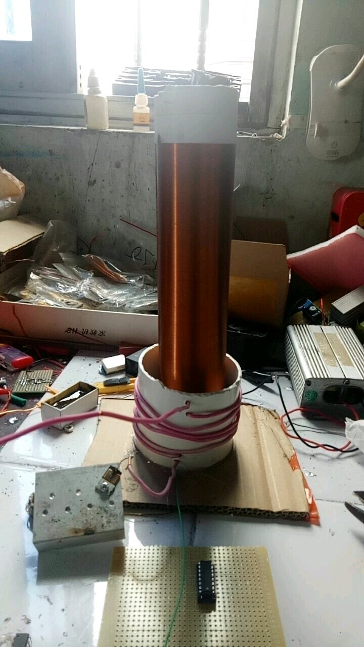 看着初级不是紧绕又不是直接绕在次级上耦合度极低,耦合度太低影响转换效率,输入电压太低要是输入功率低于300W,次级又太高要想出满意可观赏的电弧根本不可能预计能点灯,我30厘米的次级才出1厘米左右电弧