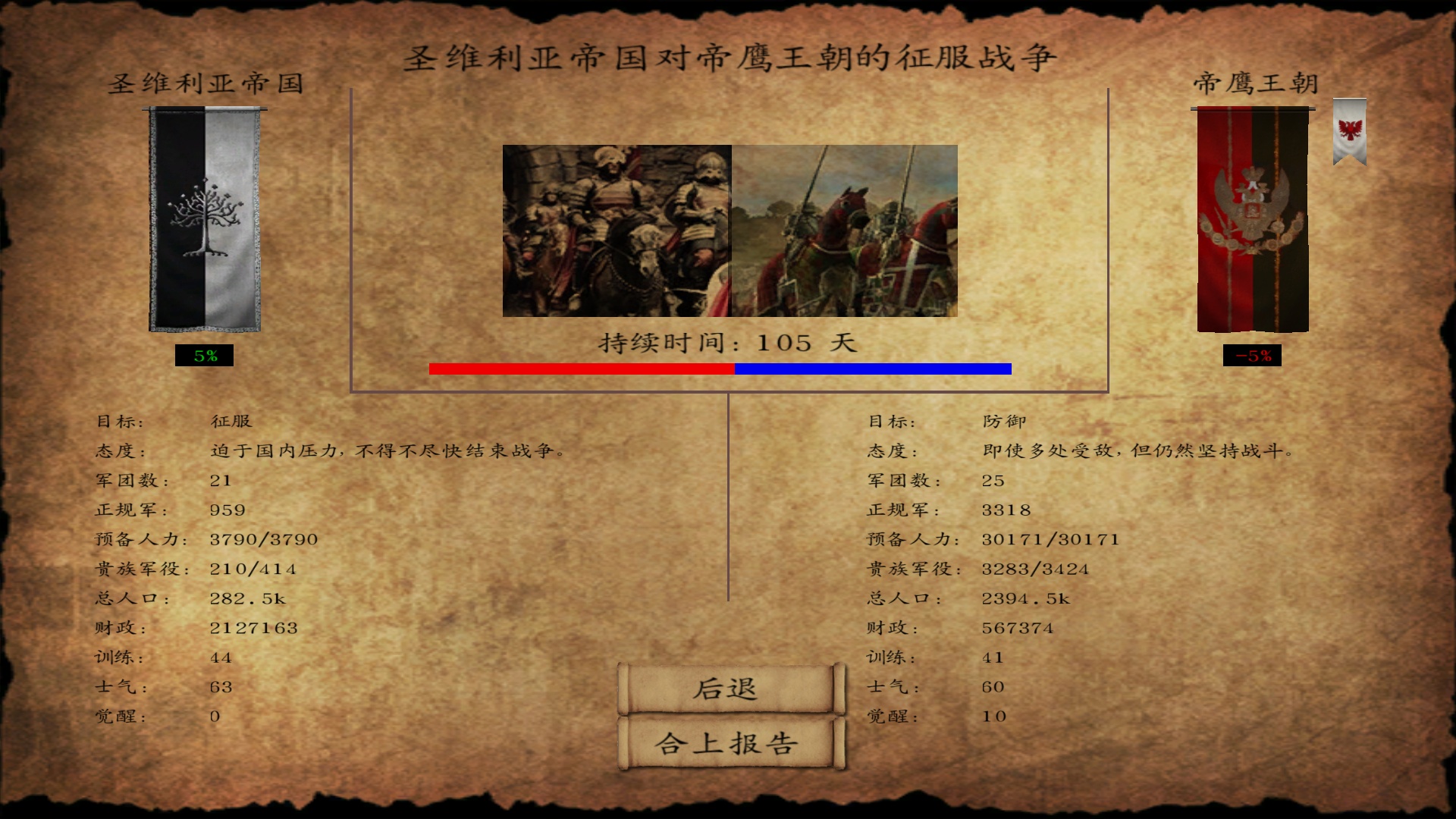 我开一个档努力帮帝国打赢了和帝鹰的两次战争,但是战争分数导致割两个堡不痛不痒,倒是格德城寨不知道为什么士兵越来越少,现在就剩下40个守军,帝国领主都一个个躲在城里就剩一个兵,想问问是bug吗?